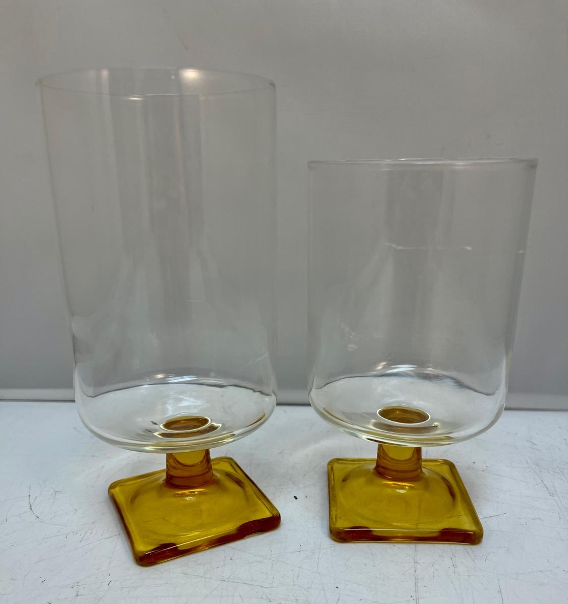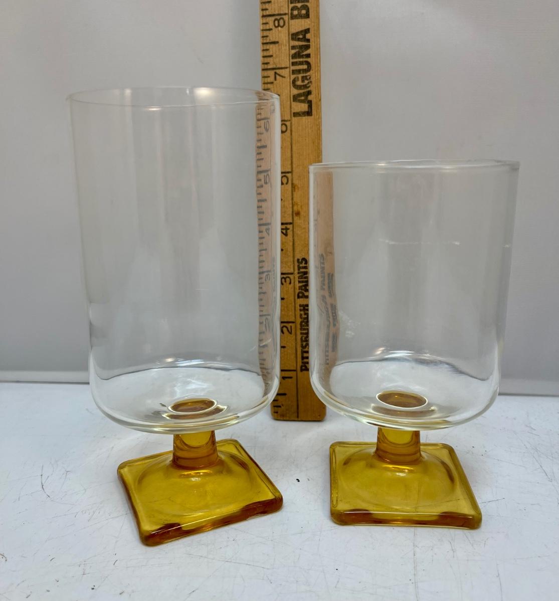 Pair of Vintage Amber Footed Drink Glasses Goblets. In good condition. Different sizes.