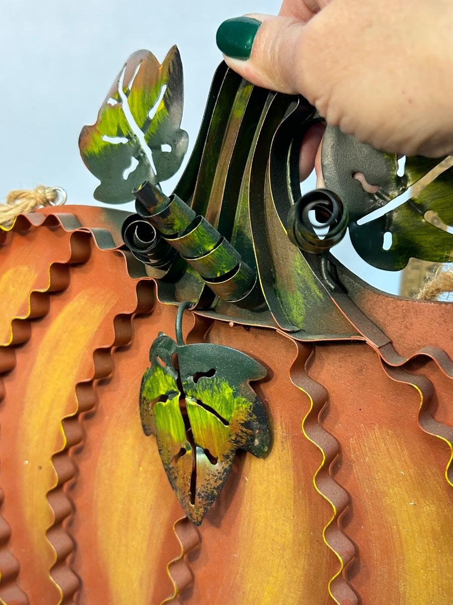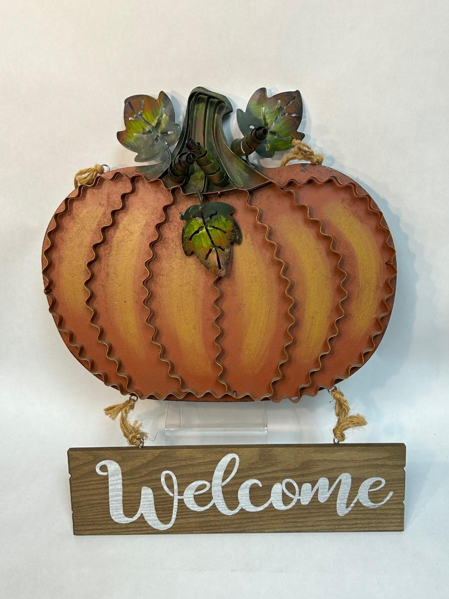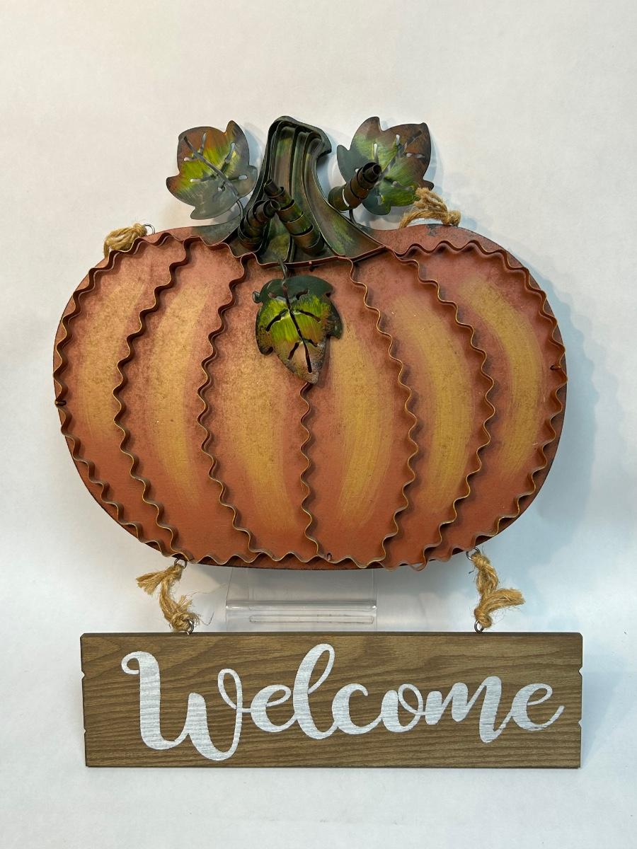 Painted Wood and Metal Wall Hanging Seasonal Art Pumpkin Welcome Sign