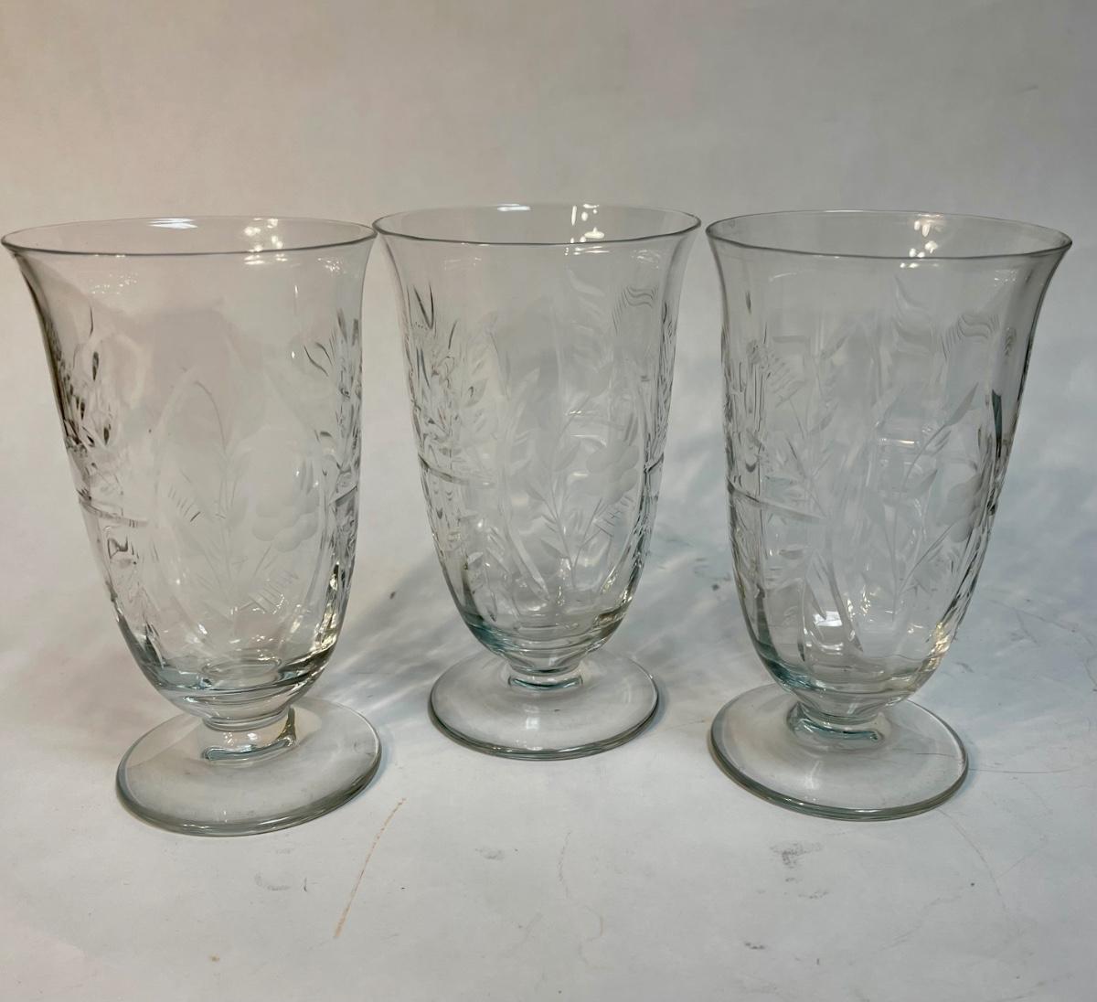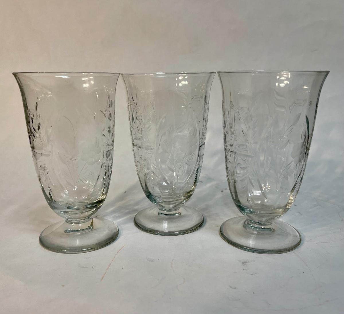 Lot of 3 Tall Glassware Drinking Ice Cream Goblets