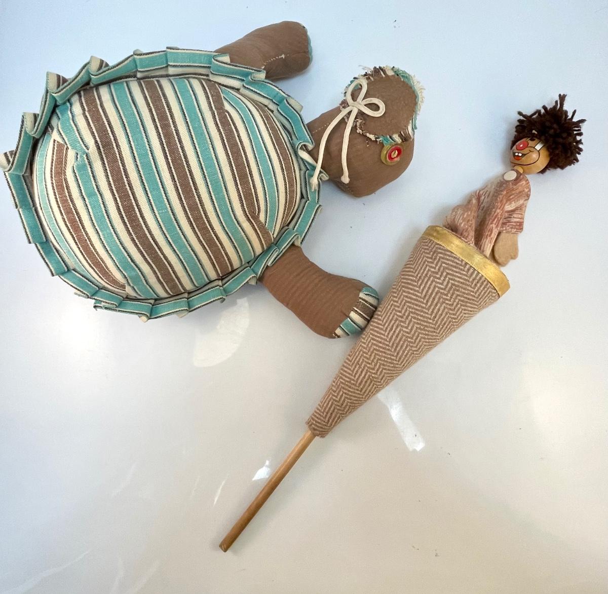Vintage Plush Stuffed Turtle Tortoise & Handheld Jack in a Box Clown Toy. In good vintage condition.