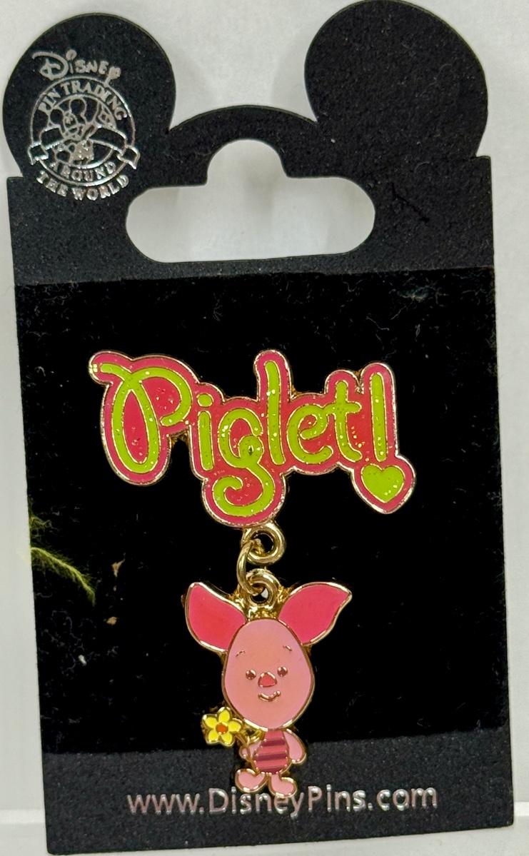 Piglet Cuties Character Dangle Holding a Flower Trading Pin