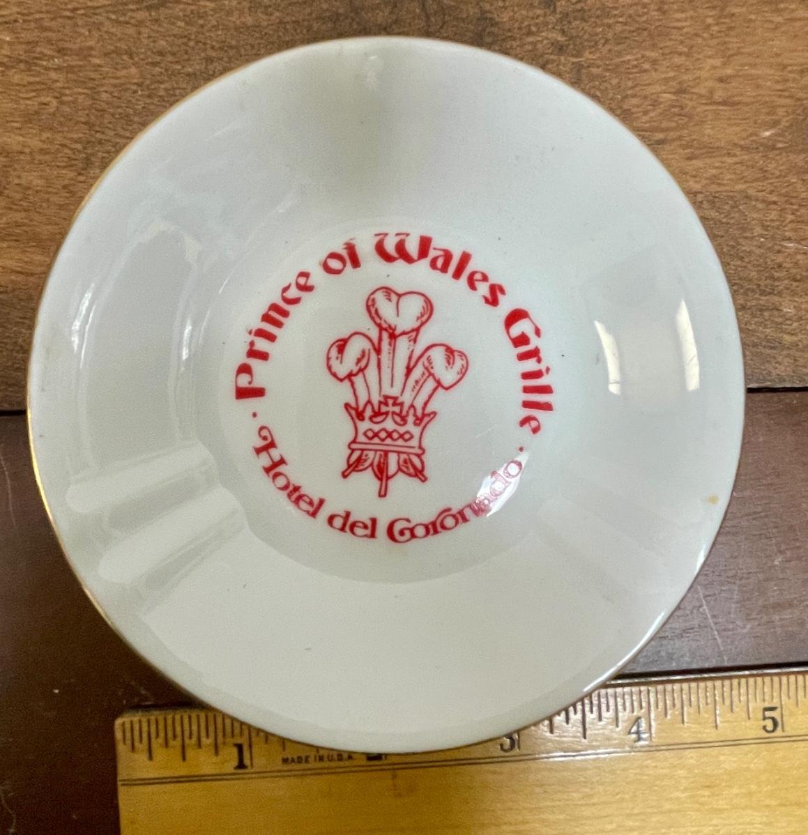 White china saucer or small plate from the Prince of Wales Grille in the Hotel del Coronado in San Diego, CA. Good condition. Approx. 5" across.