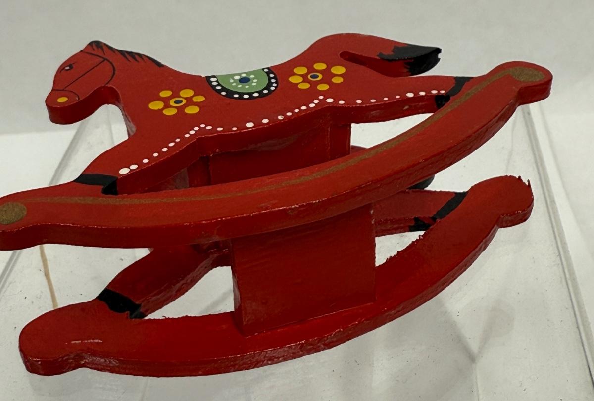 Dollhouse Sized wooden Red Rolling Horse Baby Seat