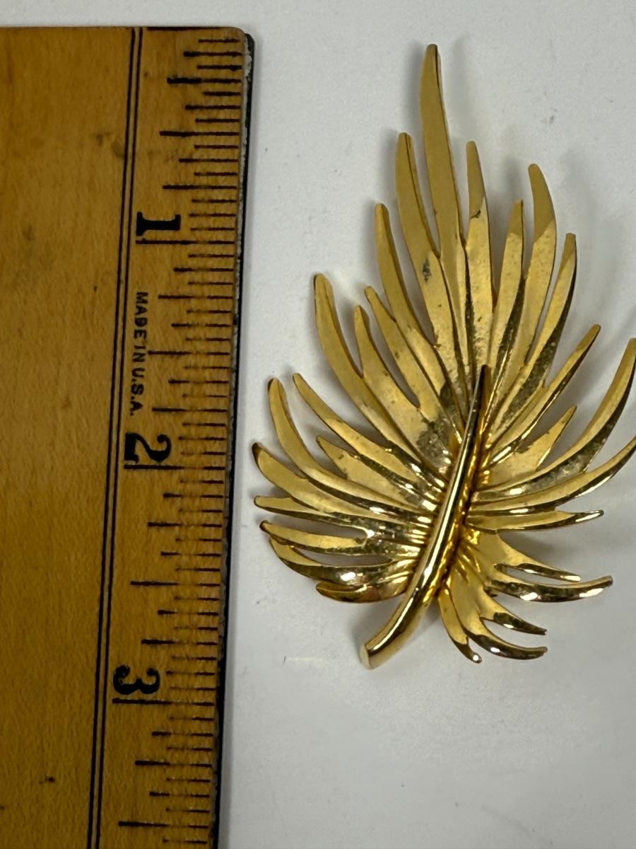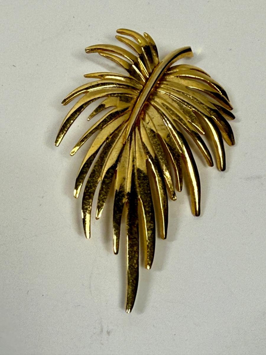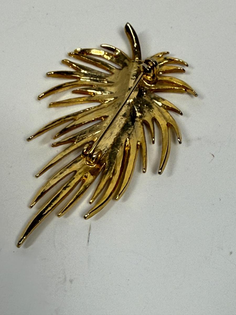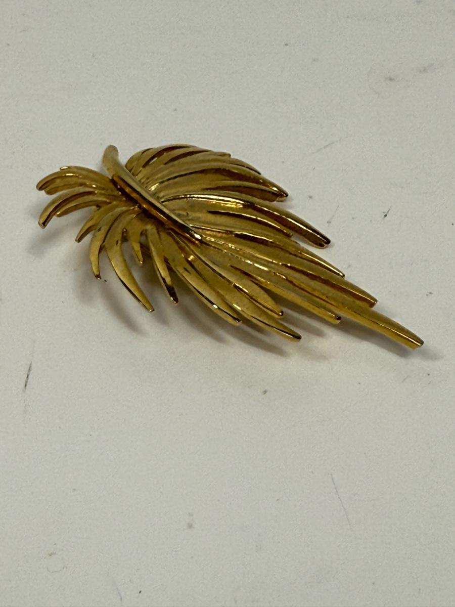 Vintage Leaf Pin Brooch Gold Tone Feather Style