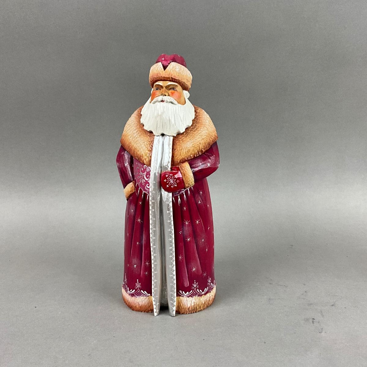 Z411 Handpainted Russian Carved Wooden Santa "Red Moroz"