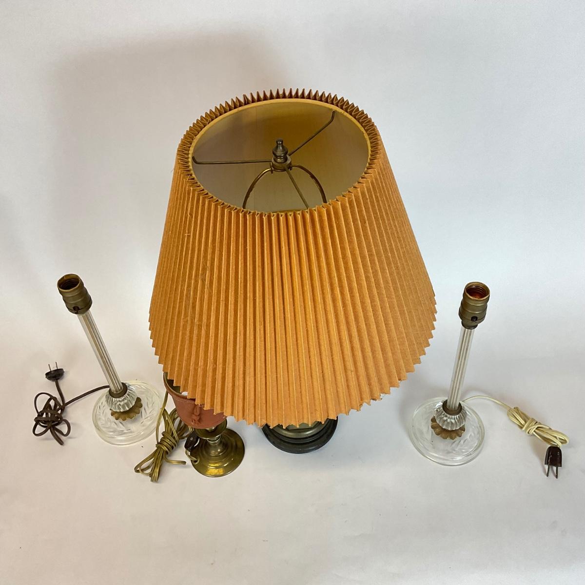 Small lamp is 9.5” high and pair of glass lamps is 14” high