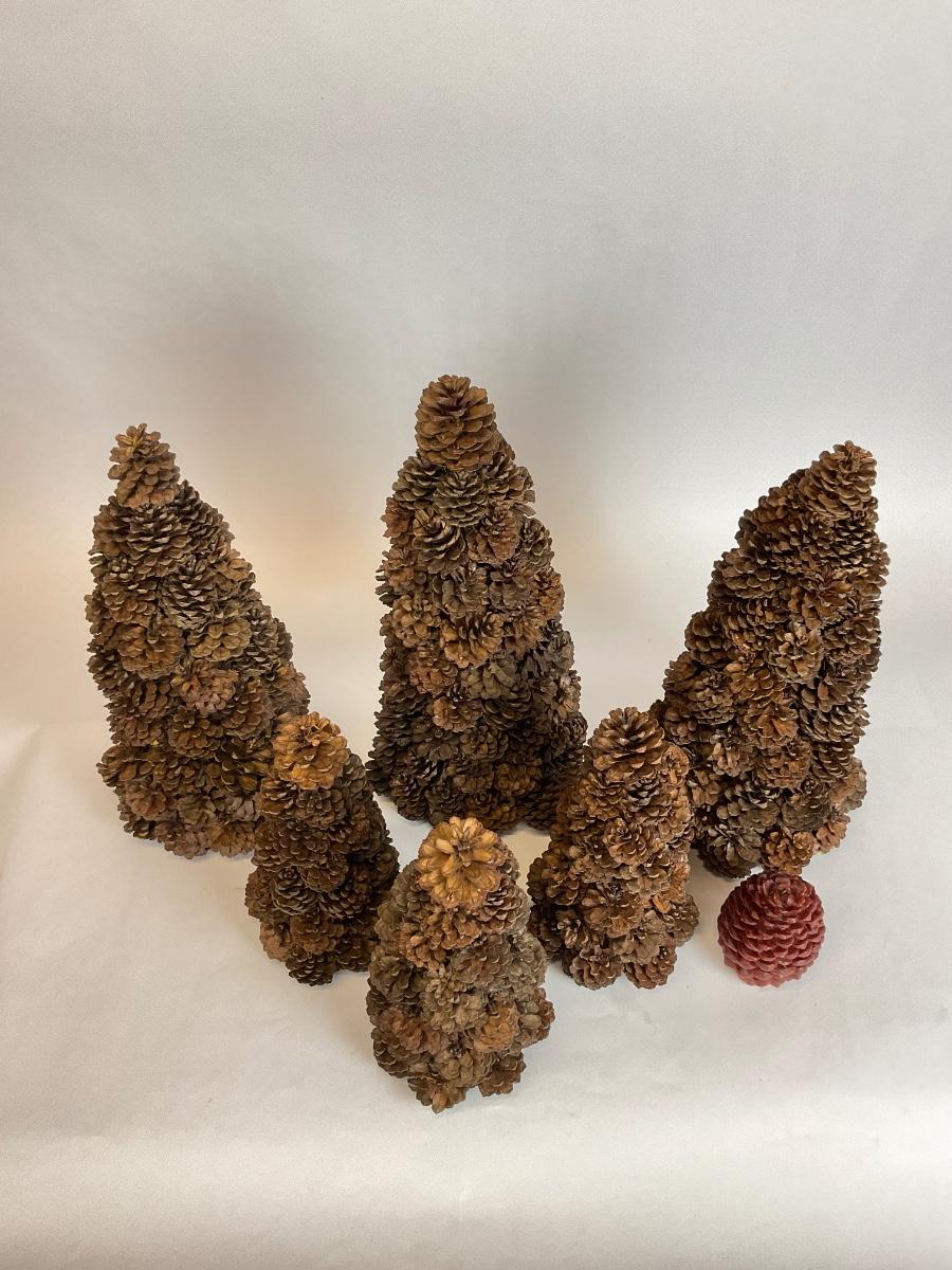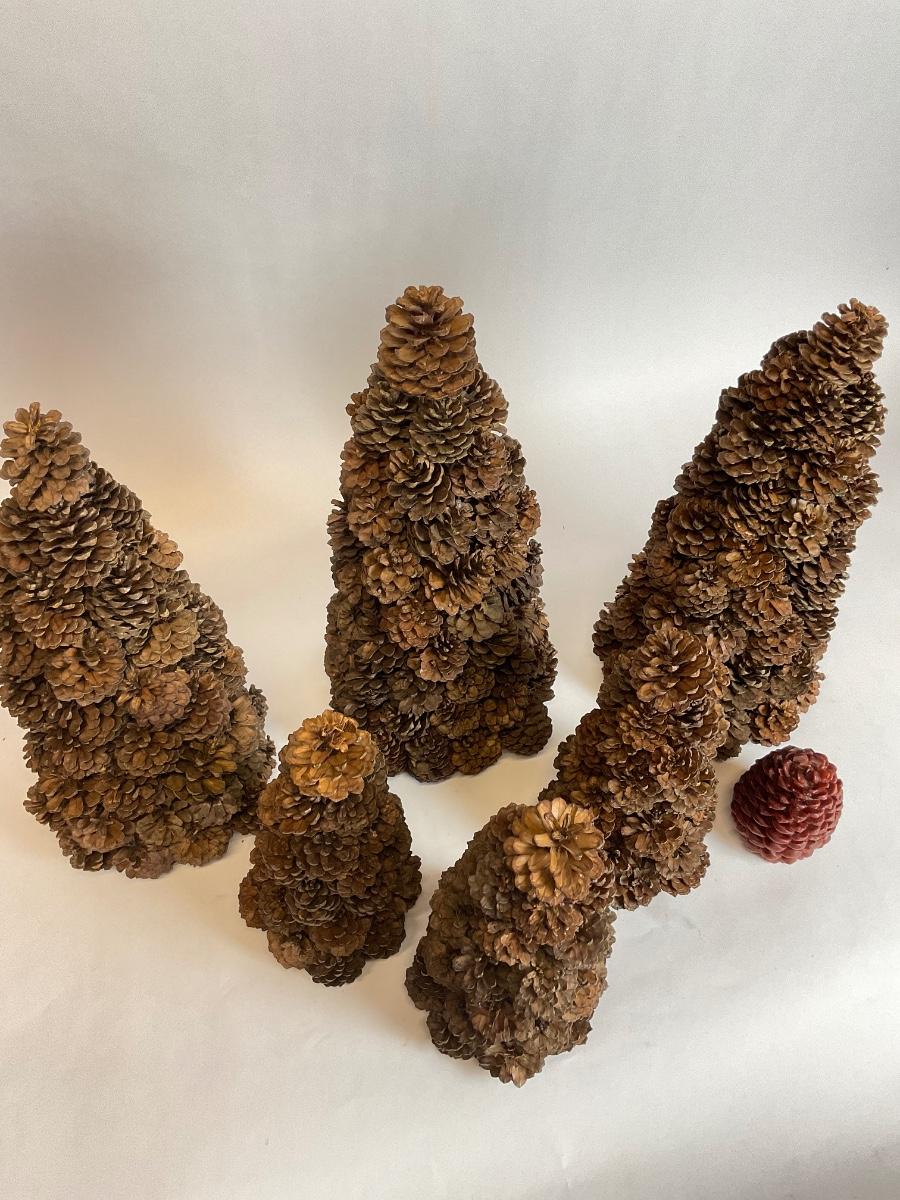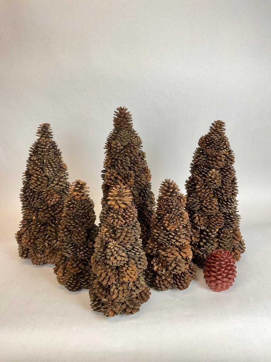 Z526 Set of 6 Crate and Barrel Pinecone Trees with Candle