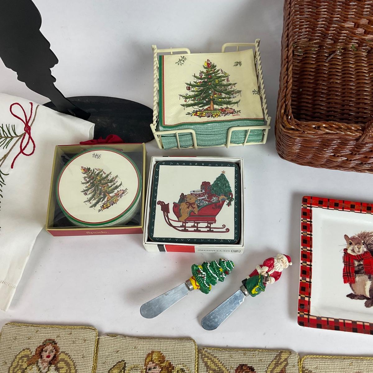 Z595 Lot of Christmas Linens, Coasters and more
