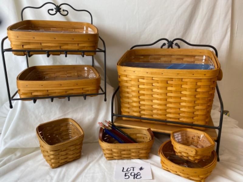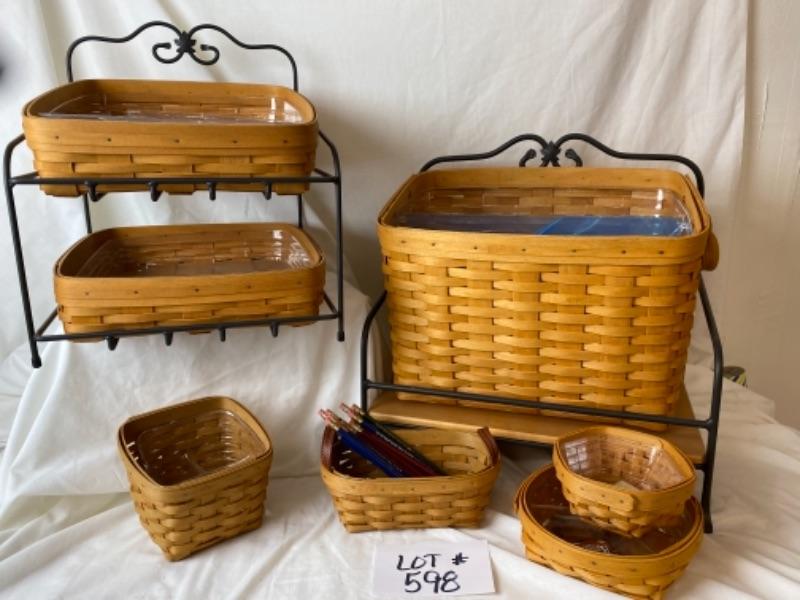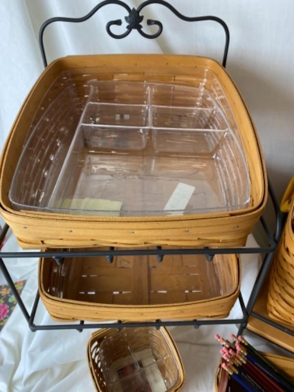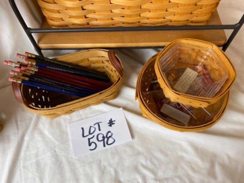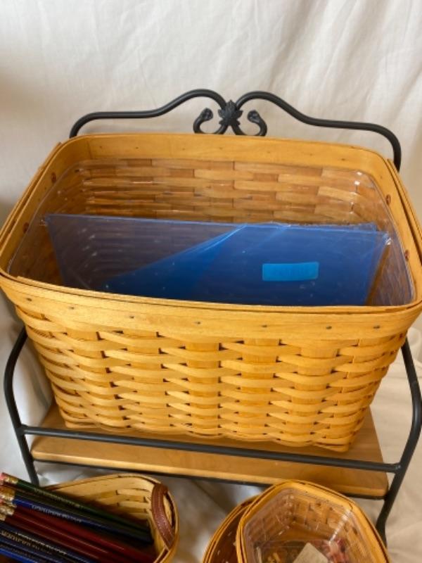 Longaberger file basket with stand, desk tray baskets with stands , small organizing basket for desk and Longaberger pencils