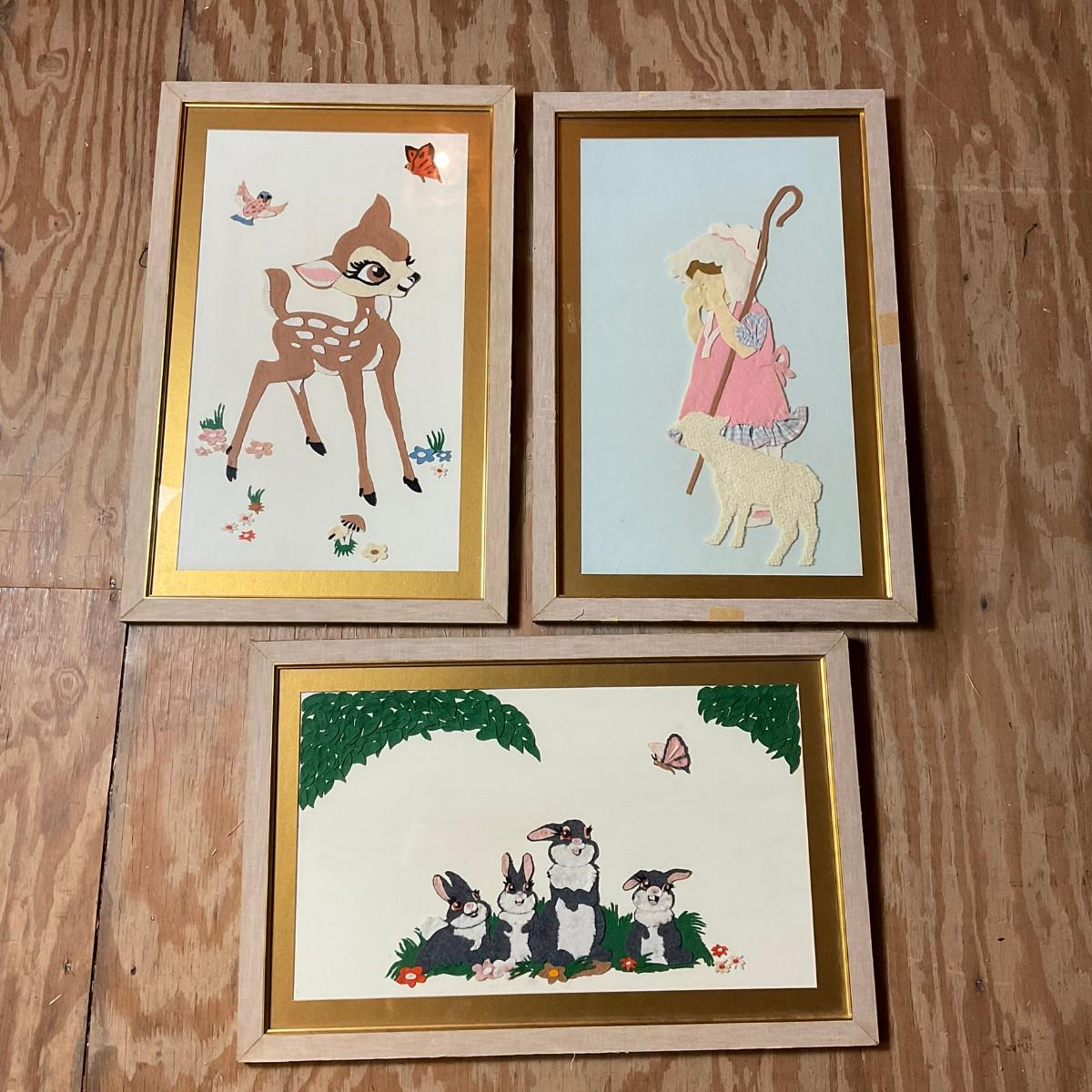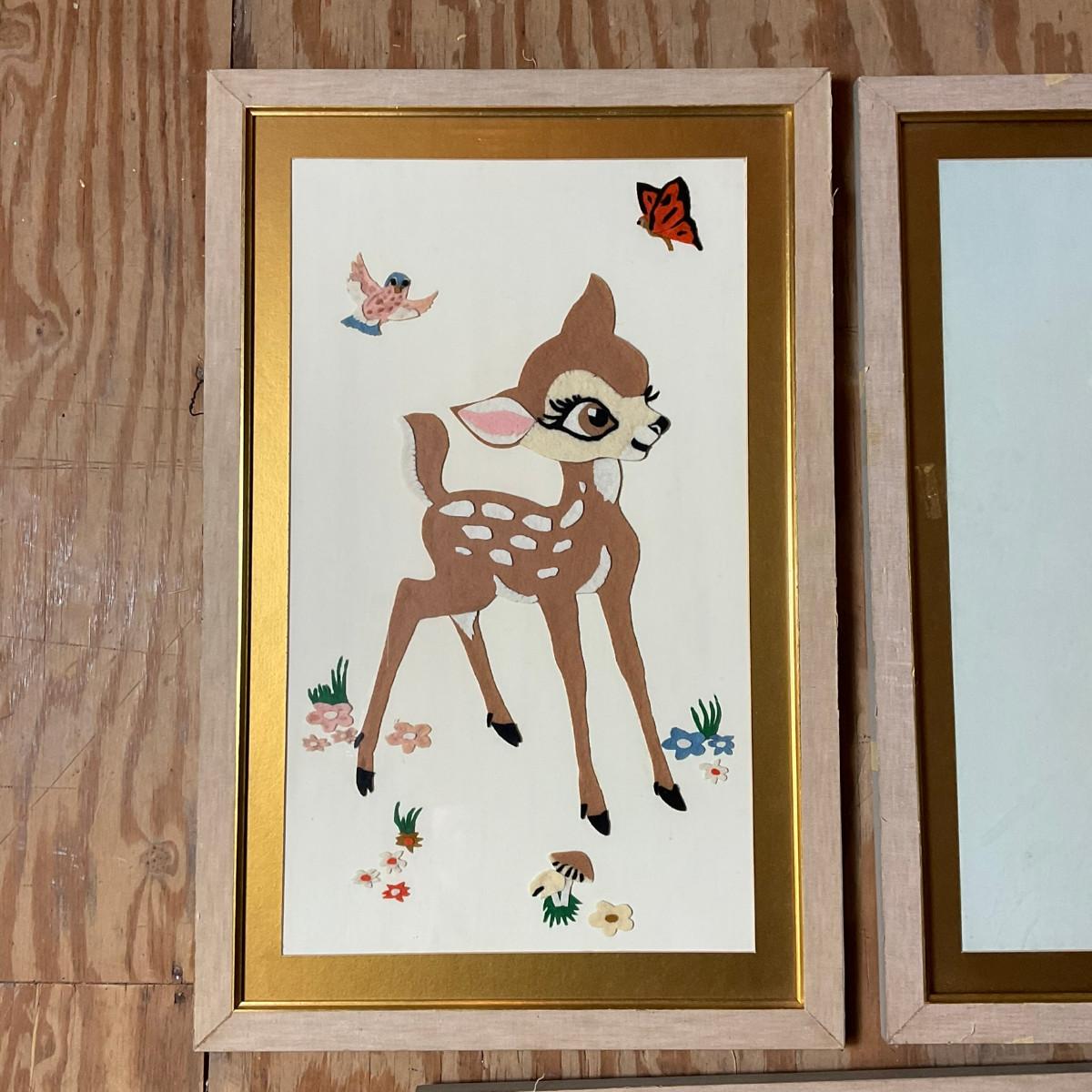 Z782 Set Of Framed Felt Collage Children Book Characters