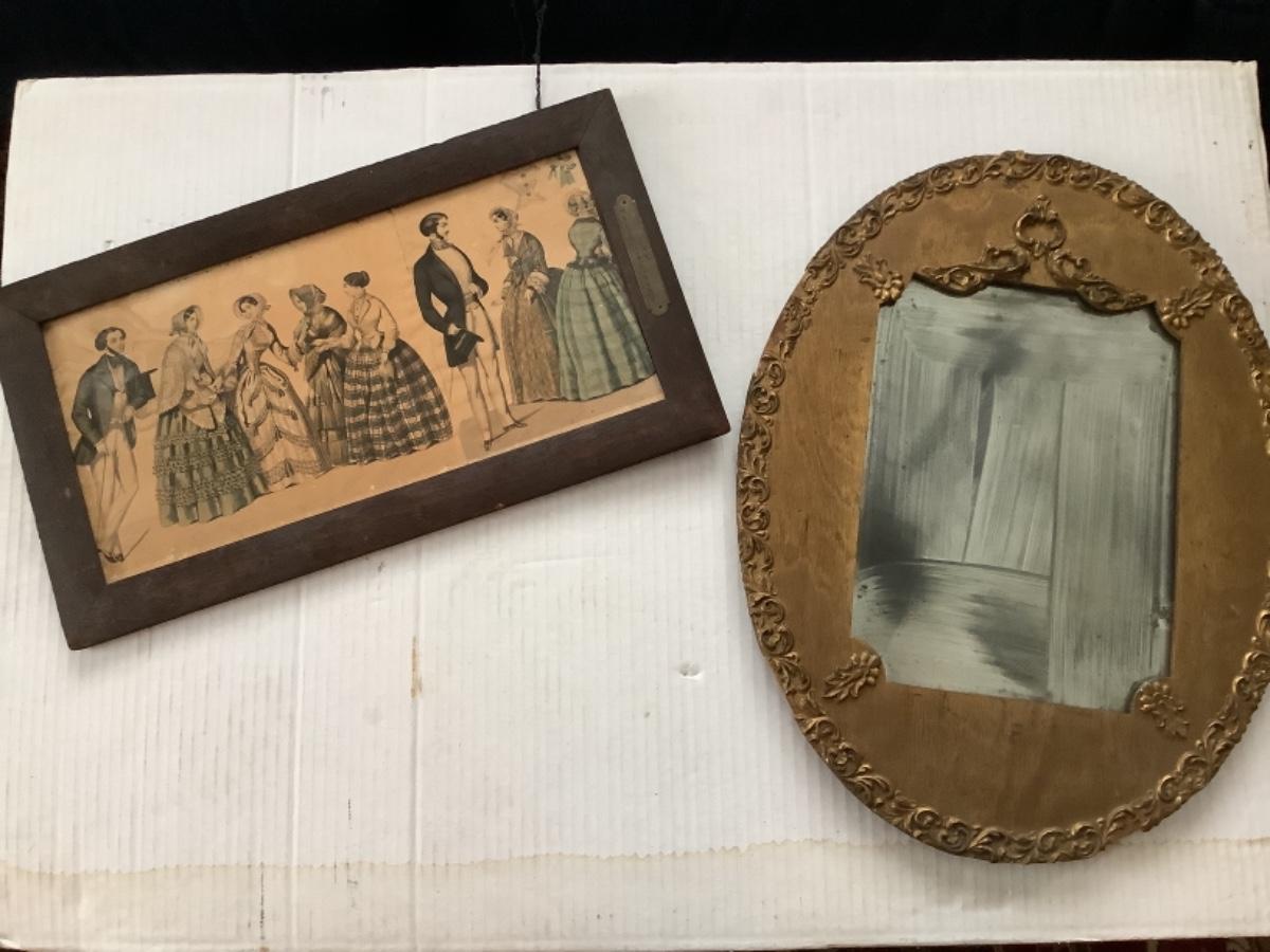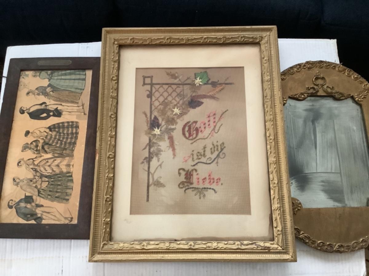 Z789 3pc Victorian Crewel, Oval Mirror and Print