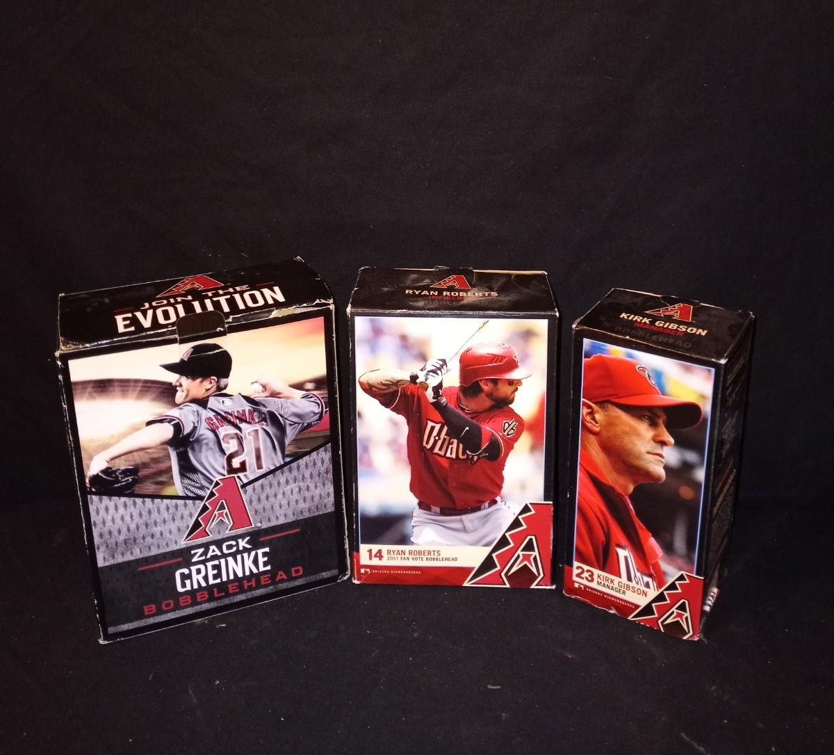 ZACK GREINKE-RYNE ROBERTS AND KIRK GIBSON BOBBLEHEADS