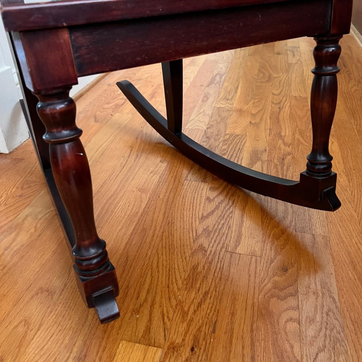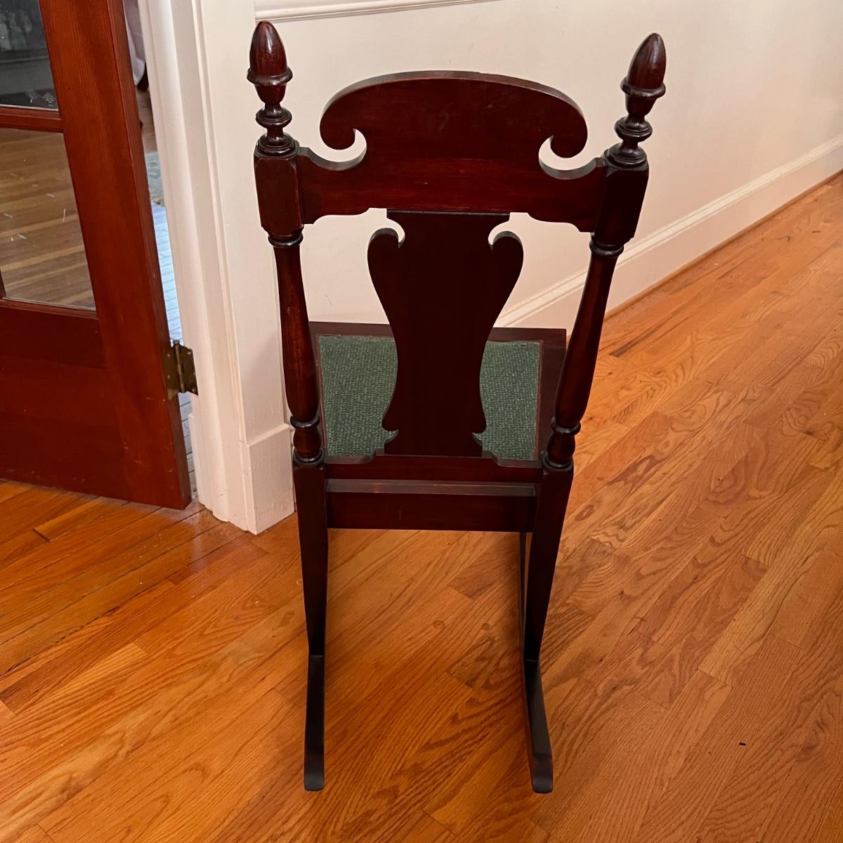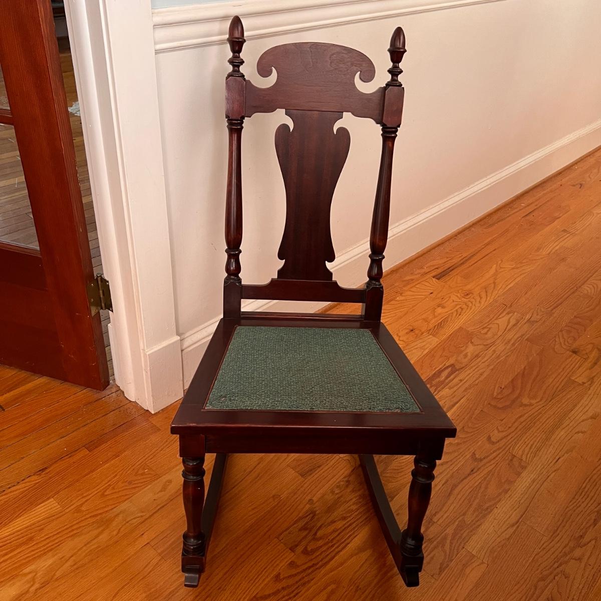 Beautiful antique rocking chair! Some of the weave in the fabric is loose as shown in pics 4 and 5. Otherwise excellent condition for its age.