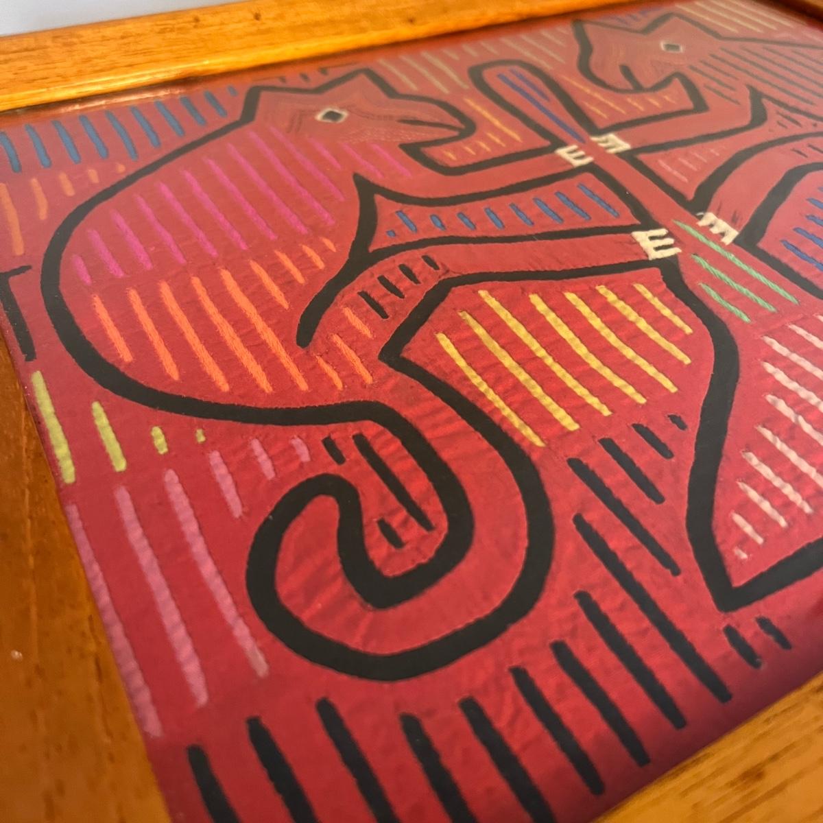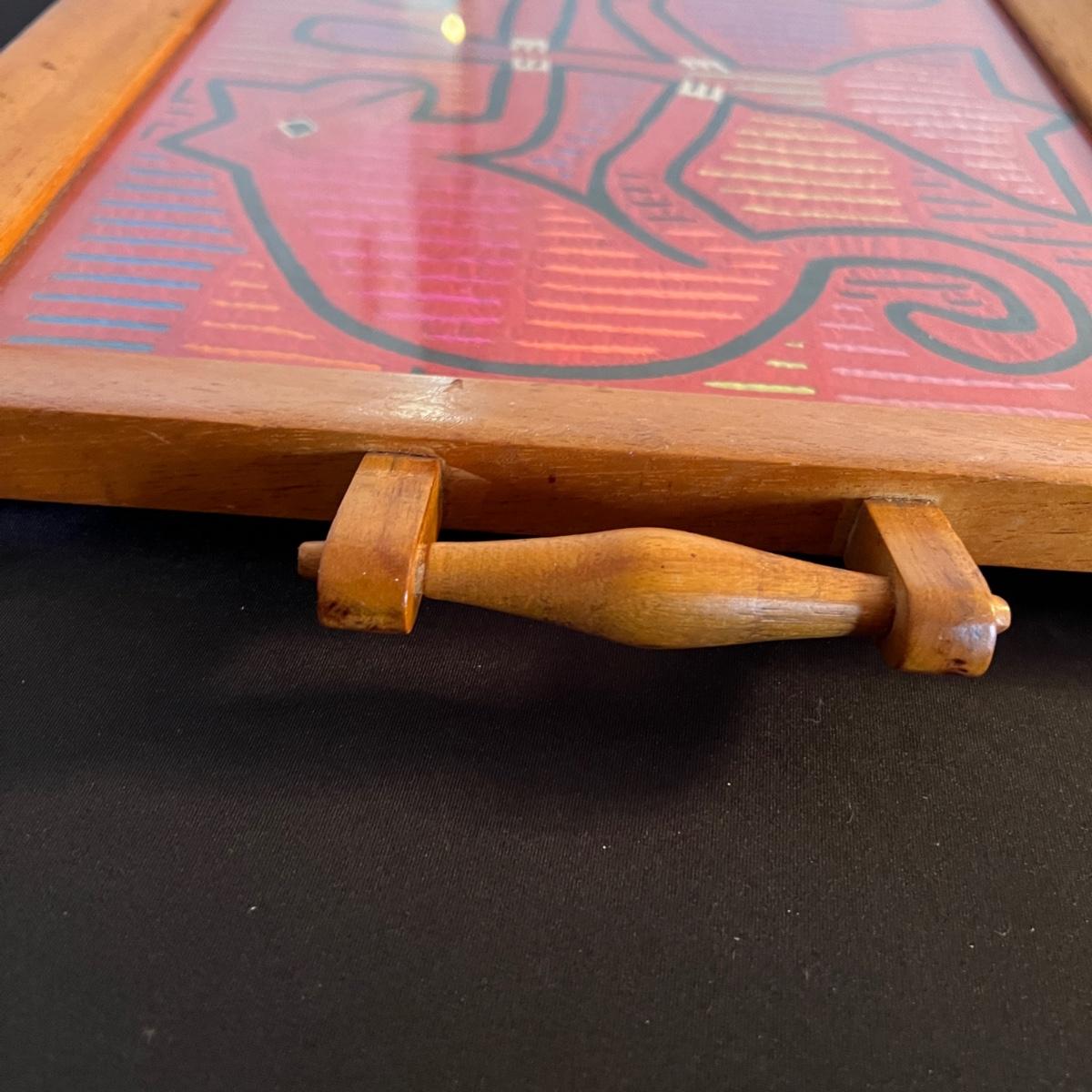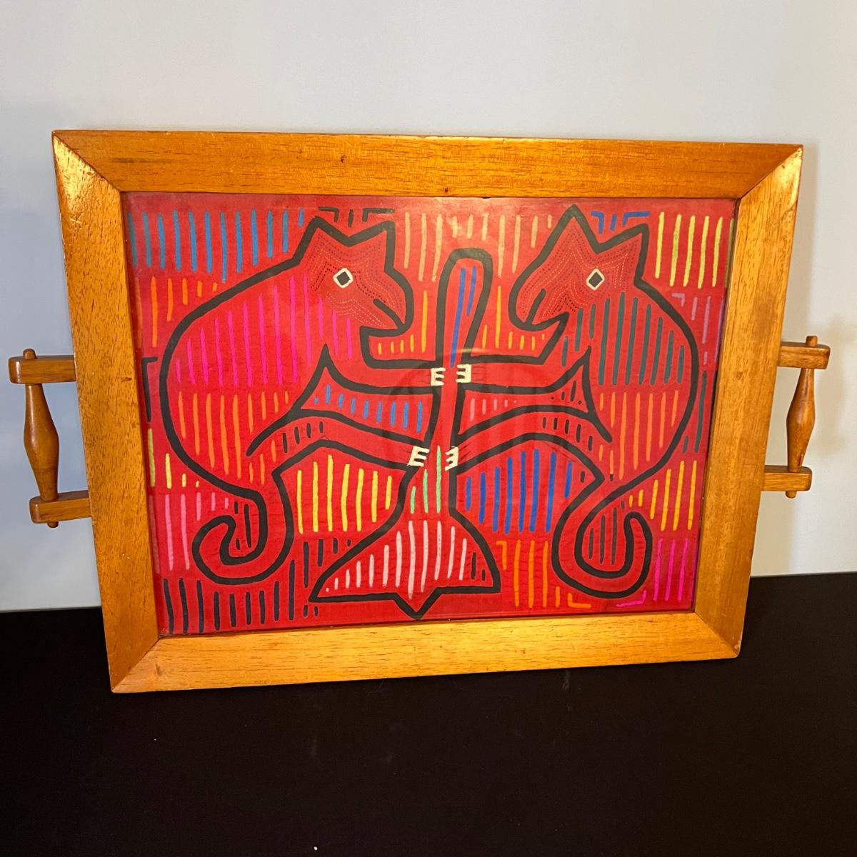 Vintage Mola Kuna Panamanian Indian Folk Art Wooden Tray