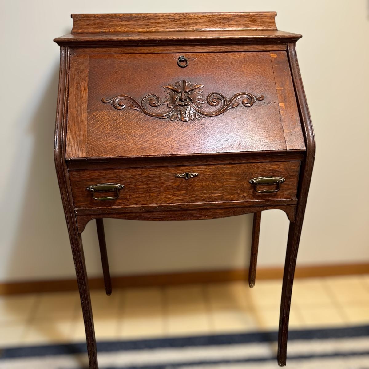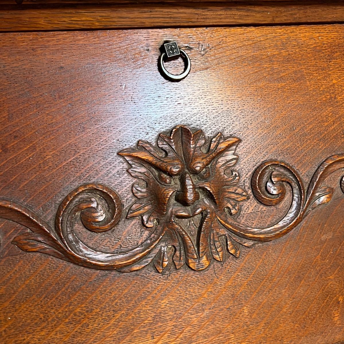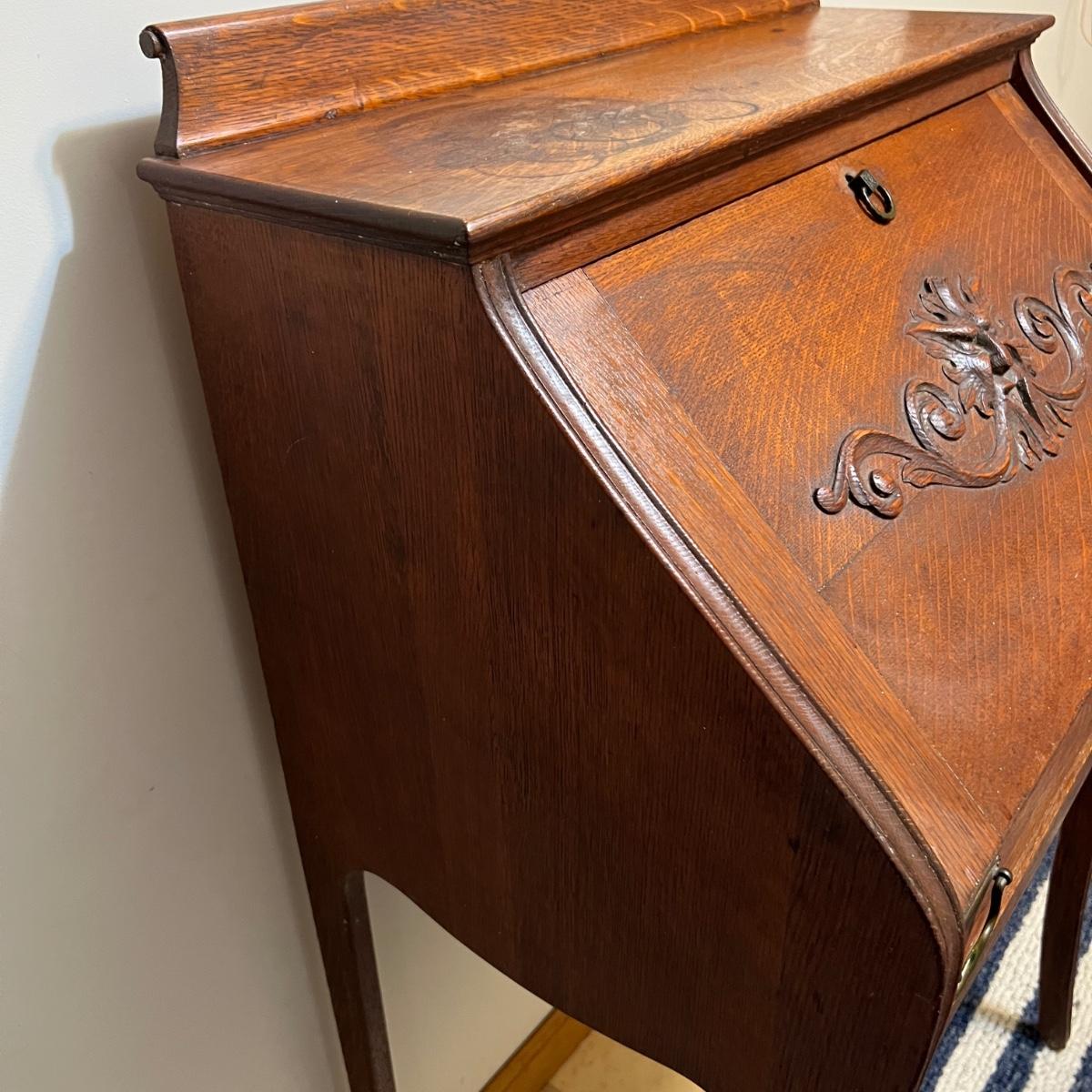 Antique Drop Slant Front Petite Secretary Desk - Ornate Lionshead Carving