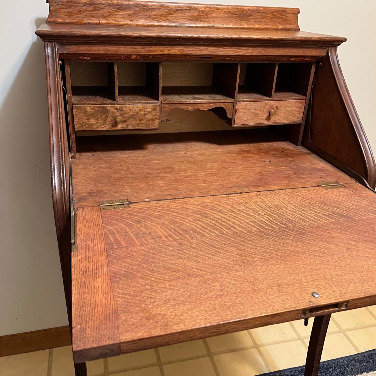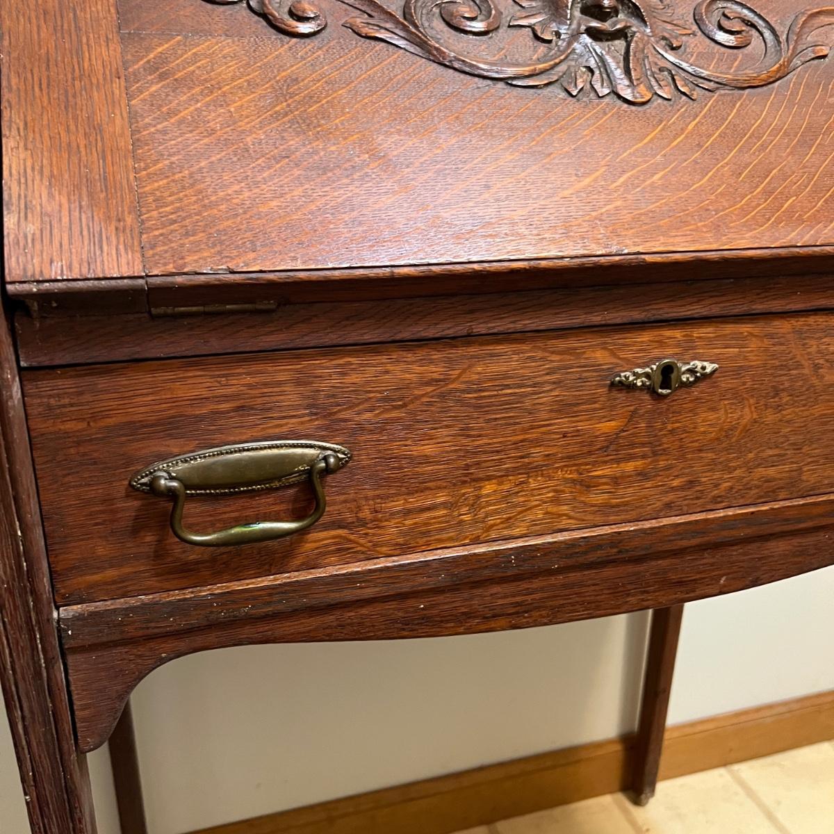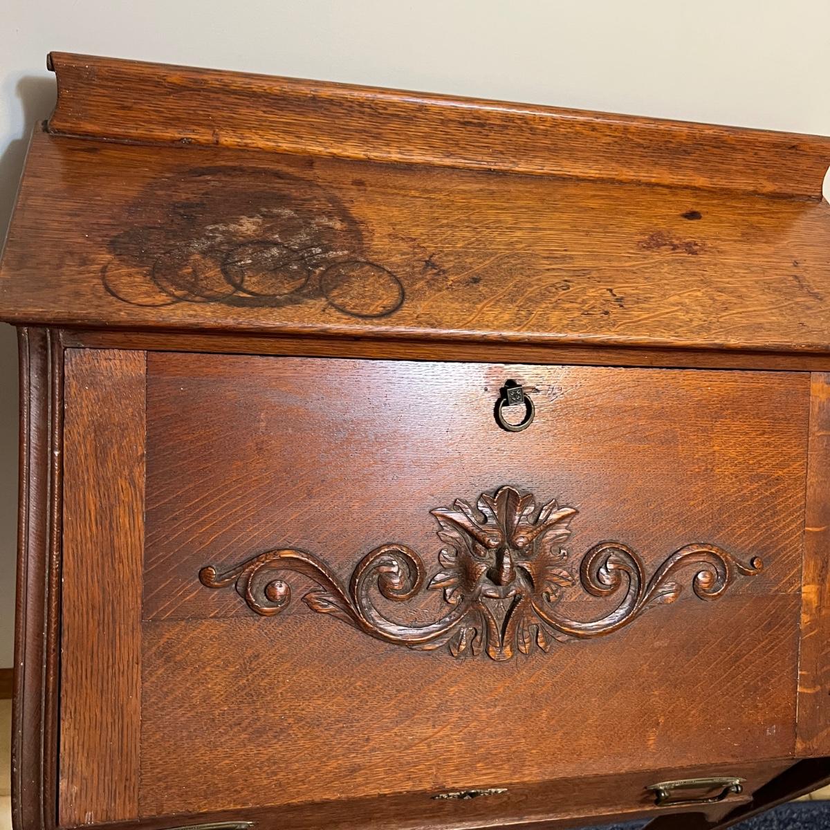 Antique Drop Slant Front Petite Secretary Desk - Ornate Lionshead Carving