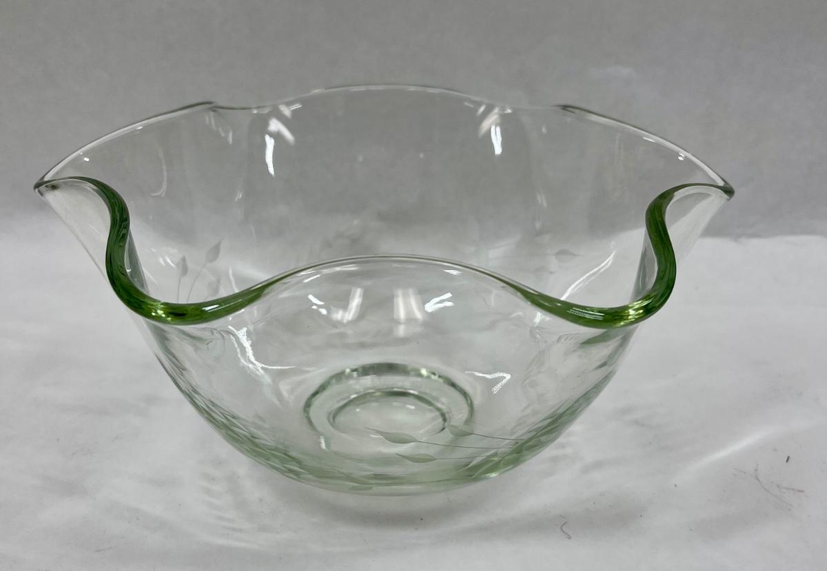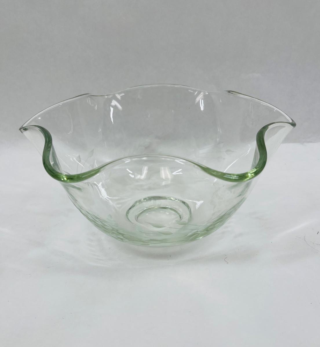Vintage INDIANA GLASS CO. clear glass bowl with Scalloped Ruffled sides