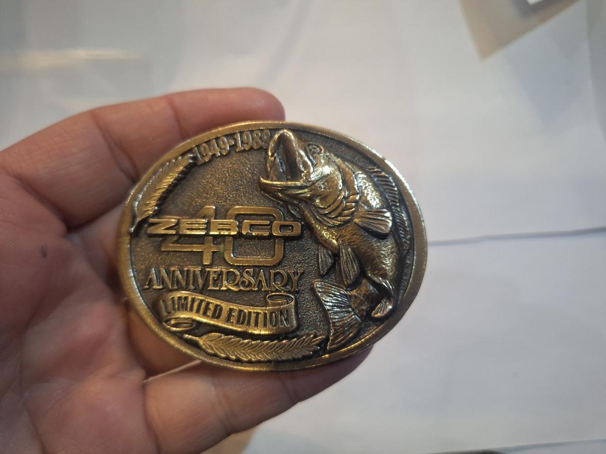 Zebco 40th Anniversary Limited Edition brass belt buckle