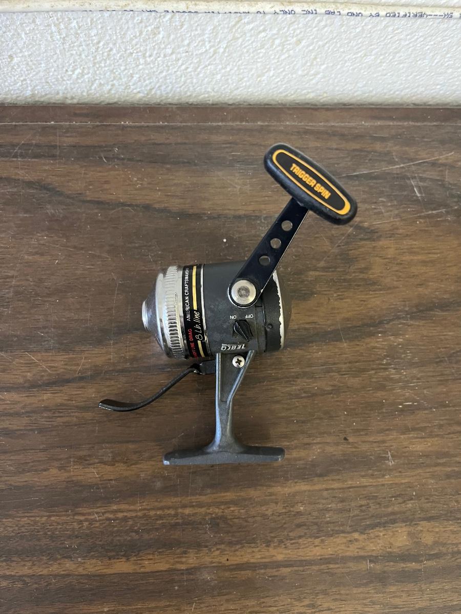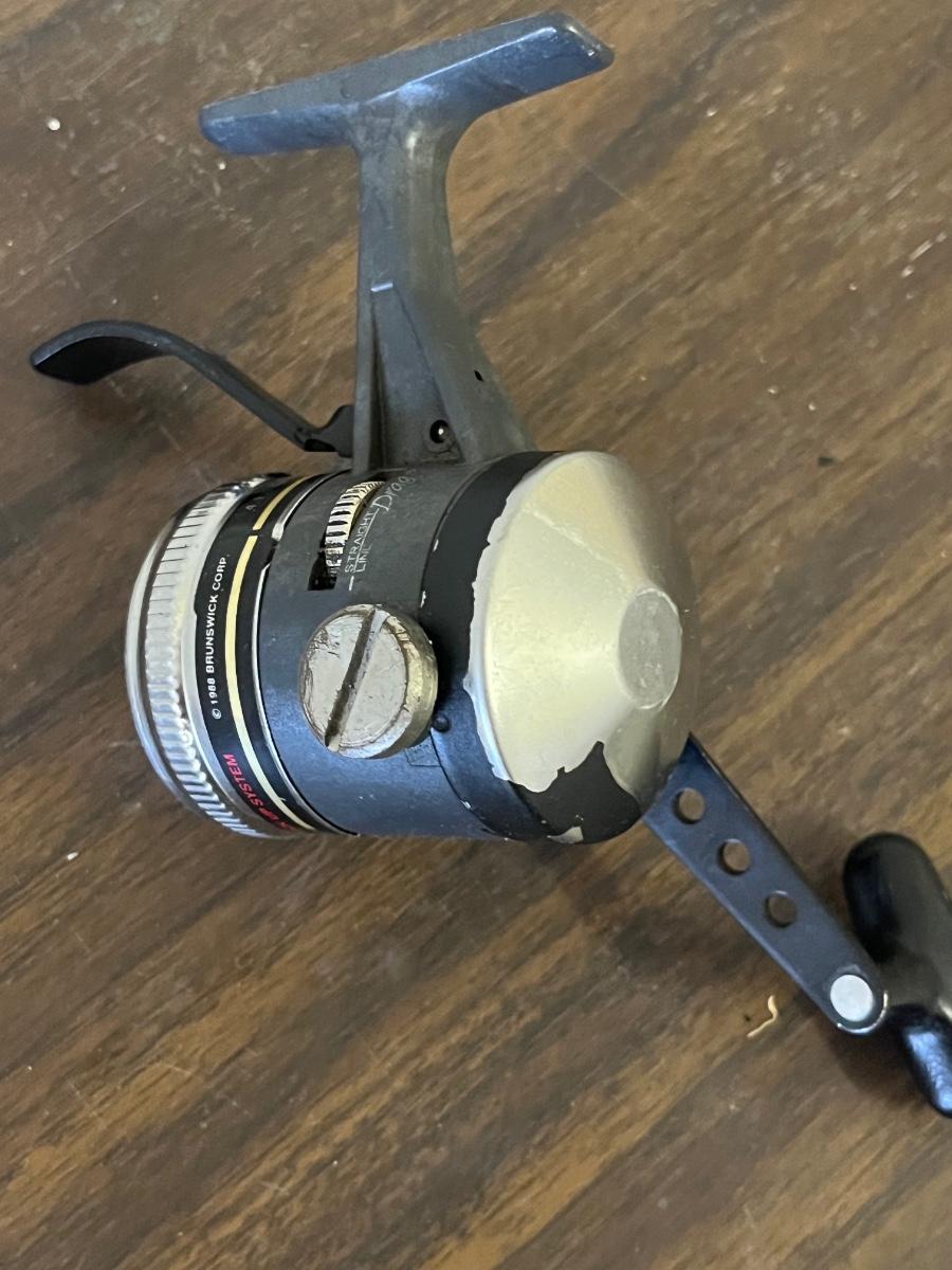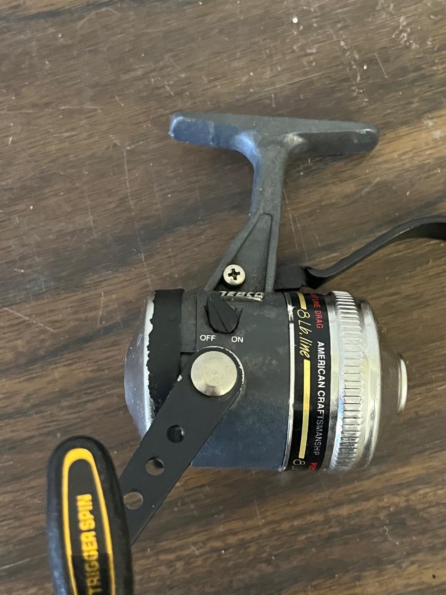 Lot includes a Zebco 33 classic fishing reel and a Zebco Feather Touch fishing reel and a spinner.