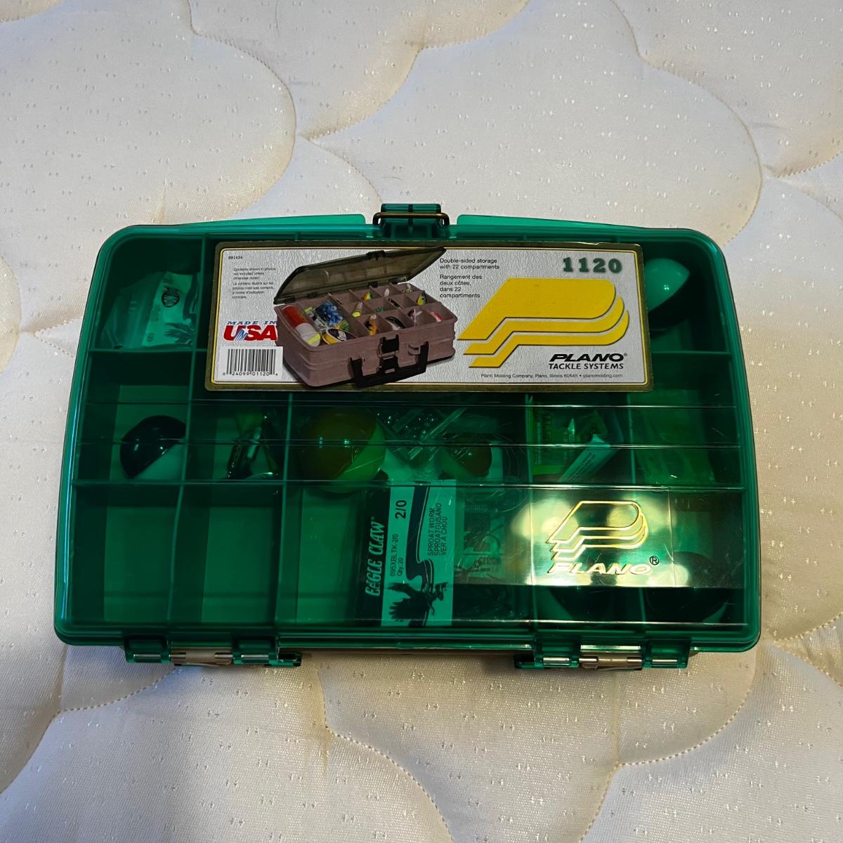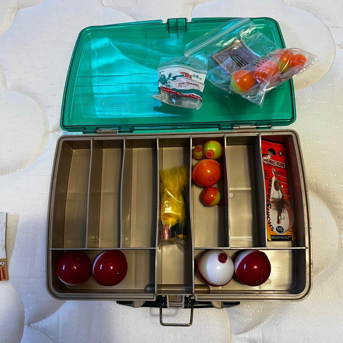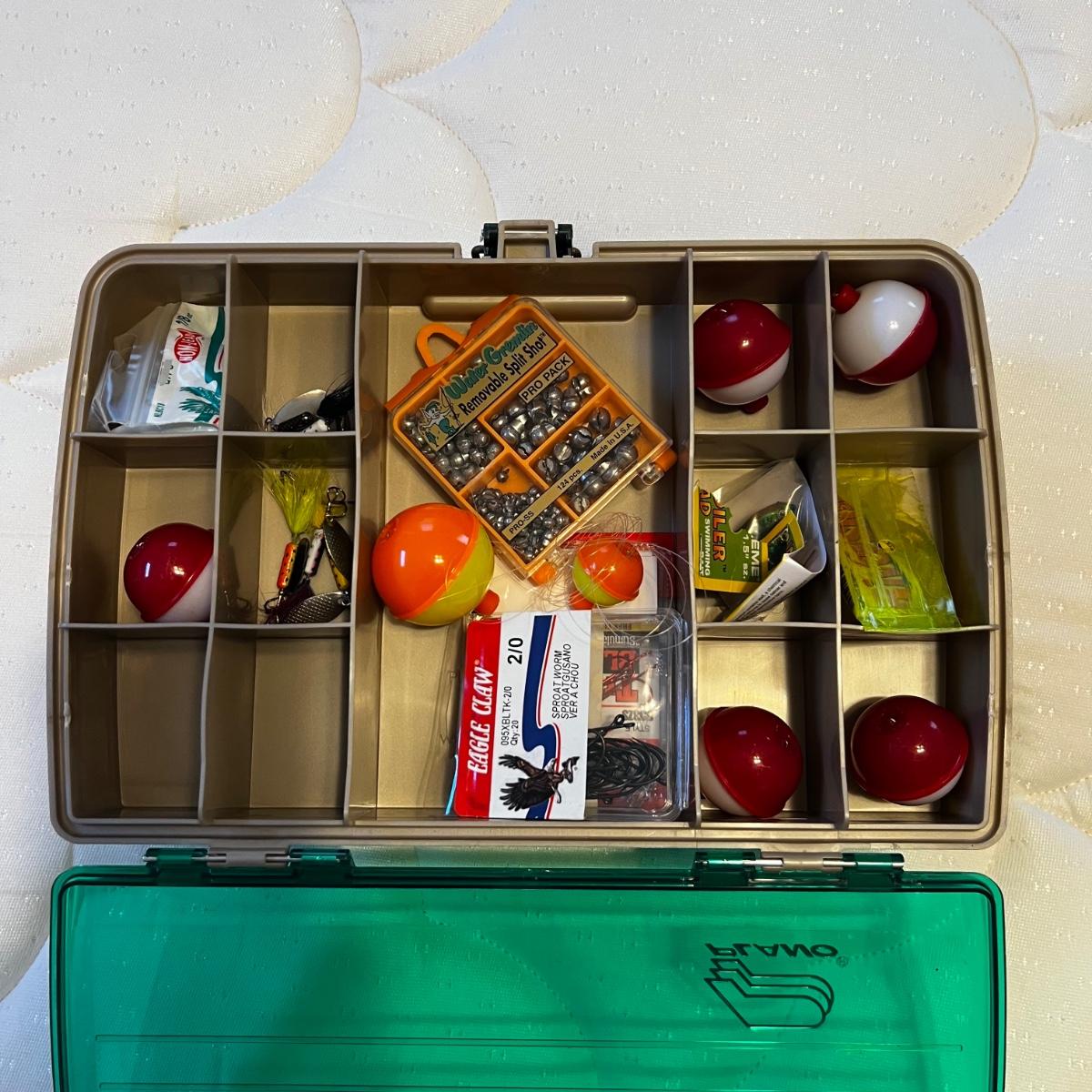Tackle box measures approximately 12” x 8” x 4”H.
