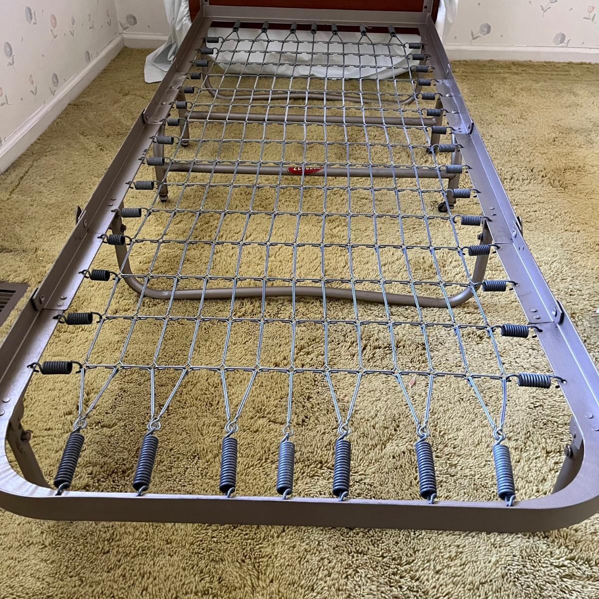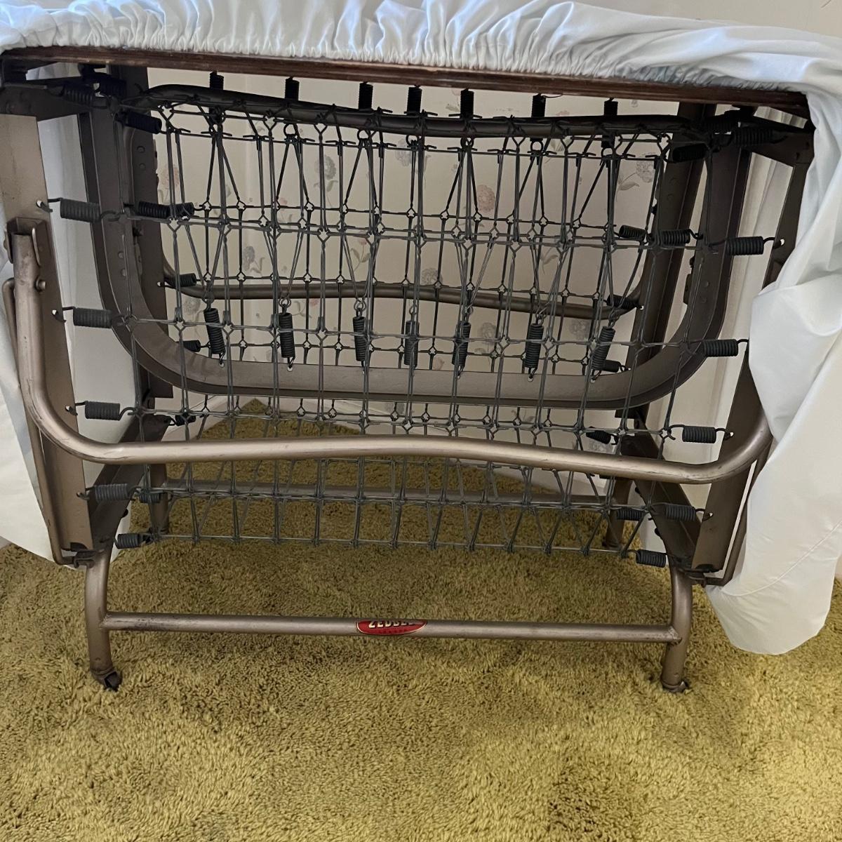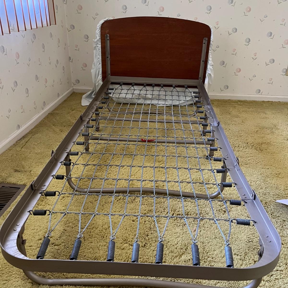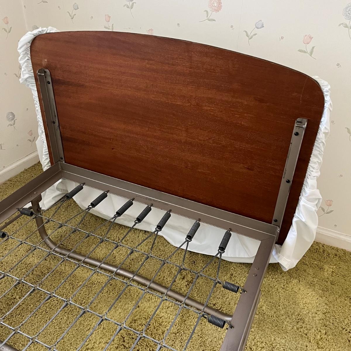 Lot includes a unique metal Zedbed table that converts into a bed with headboard. When folded table measures 21” x 33” x 30” and when open measures 30” wide x 72”long. Top of table has wear, see pictures.