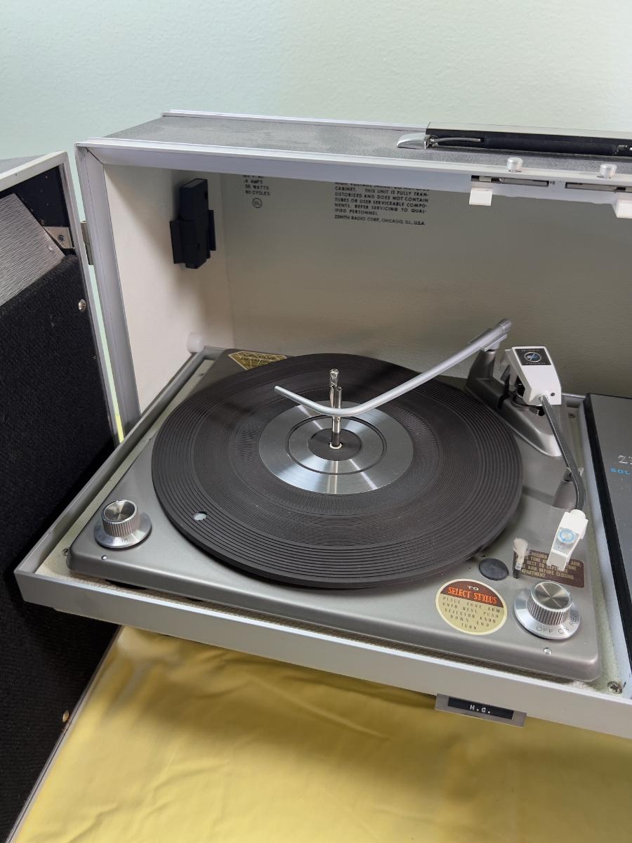 This is as Vintage as it gets!!!! Play those old Albums on. Tested Works. The Table is slightly slow. May need to be serviced. BUT IT DOES WORK!!!!! Not used a lot.