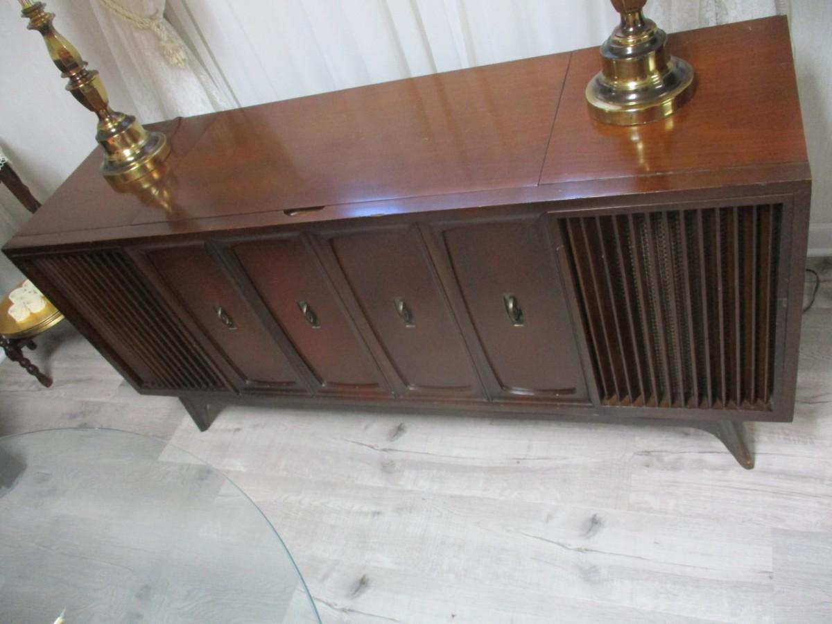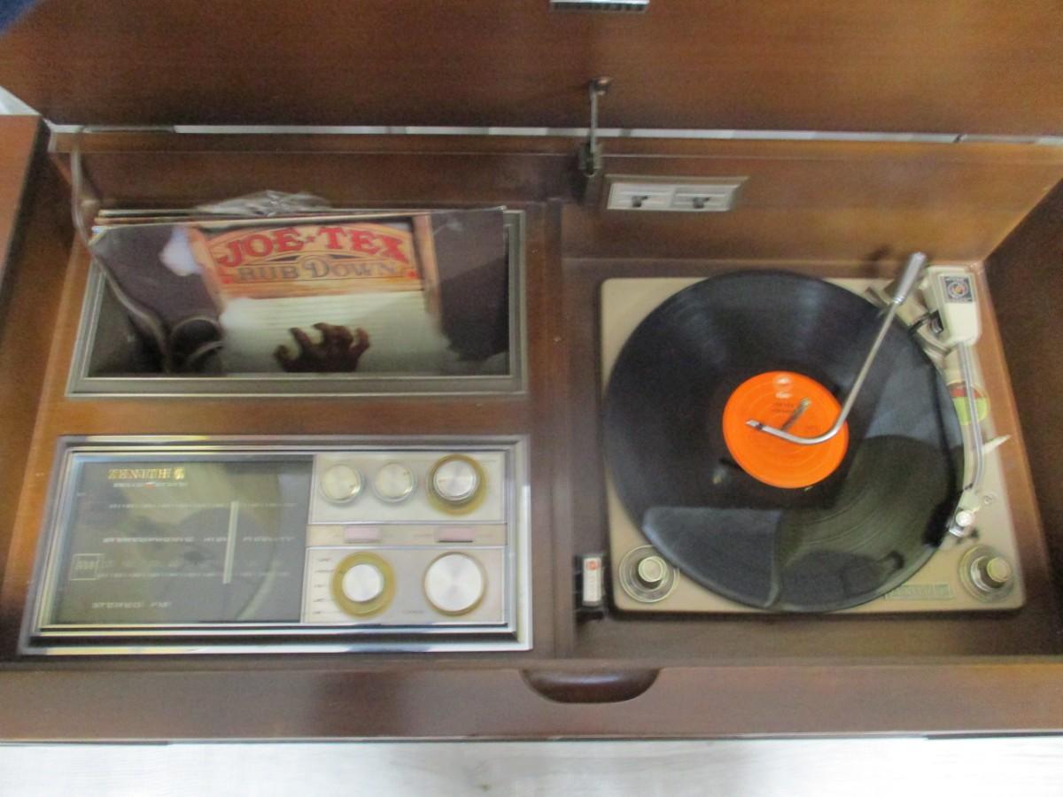Zenith Stereophonic High Fidelity Phonograph - H. Cabinet is in great condition and speakers and radio appear to work. Turntable may need some maintenance but does turn and record plays but drags at times.