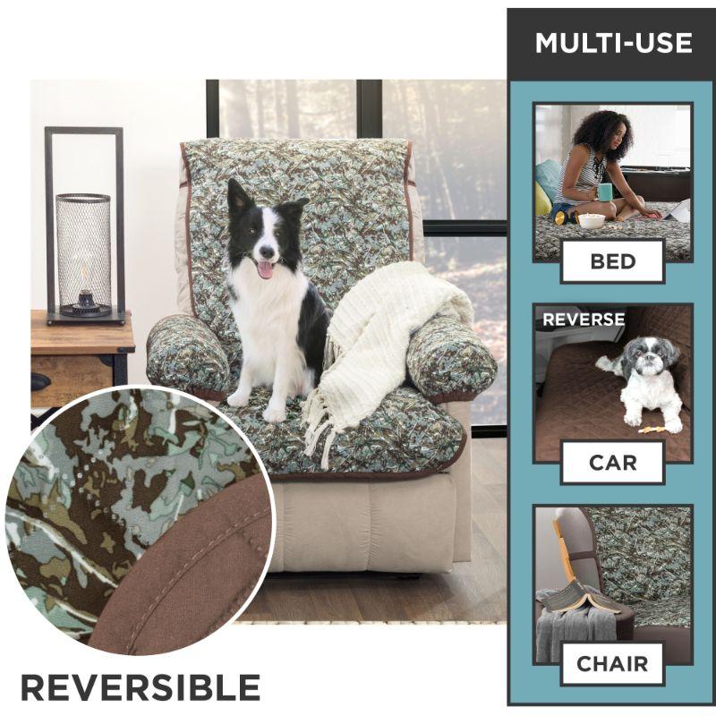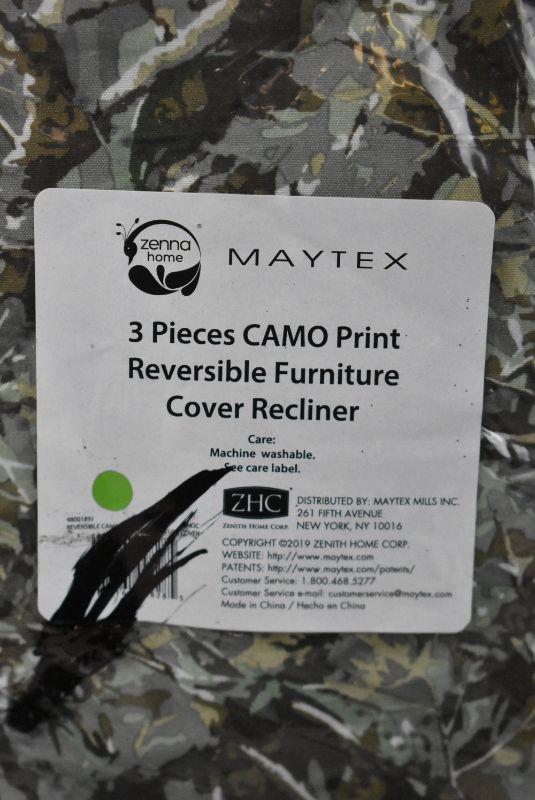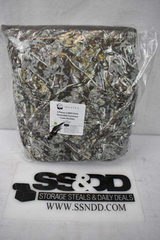 Zenna Home 3-Piece Reversible Recliner Quilted Furniture Cover, Camouflage and Chocolate - New