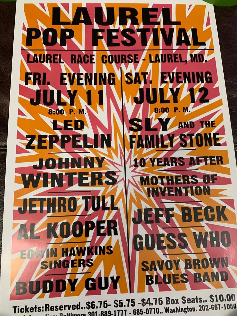 Zeppelin Jeff Beck Family Stone Guess Who Laurel Pip Festival Poster