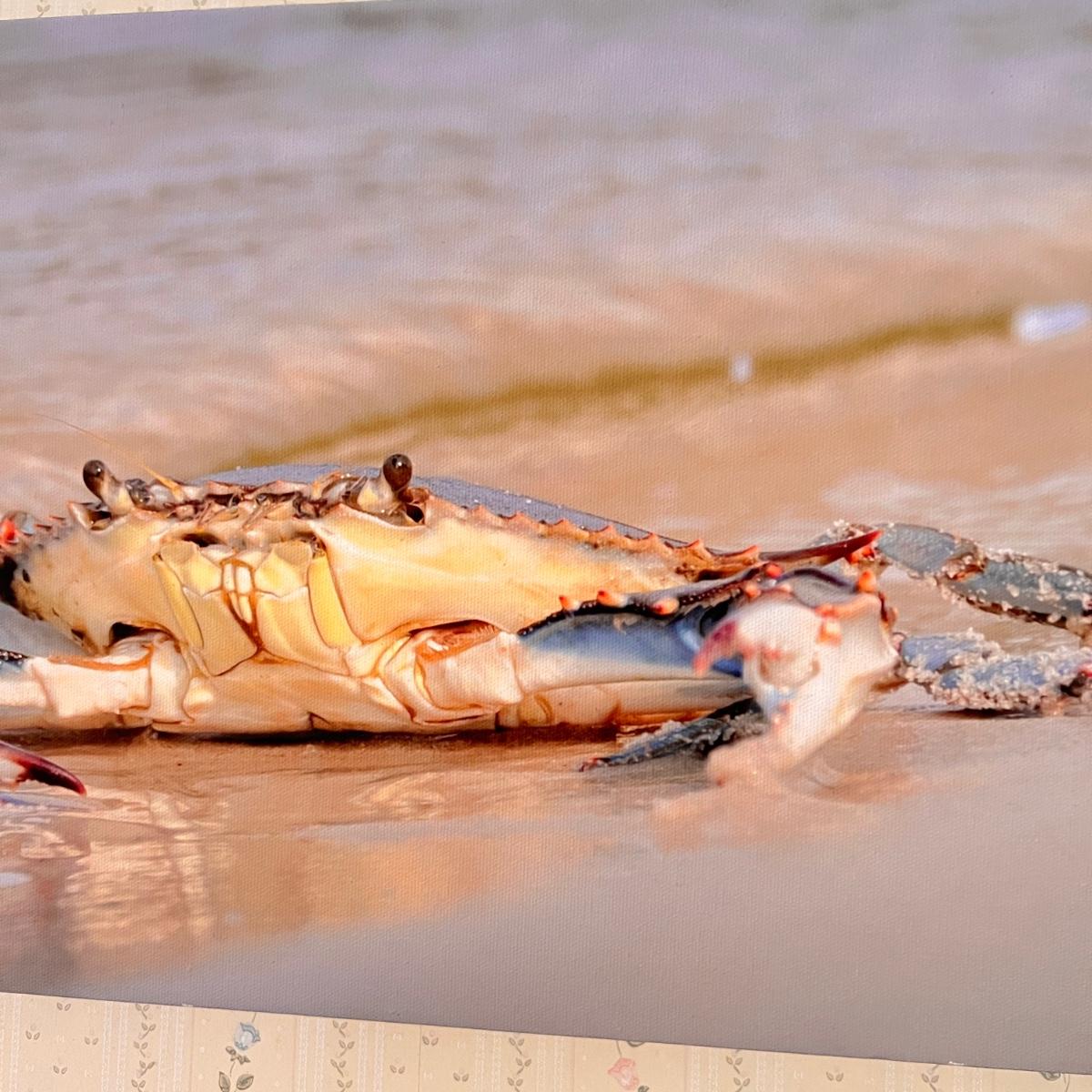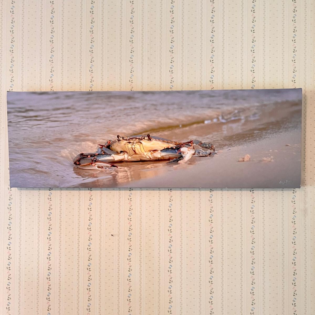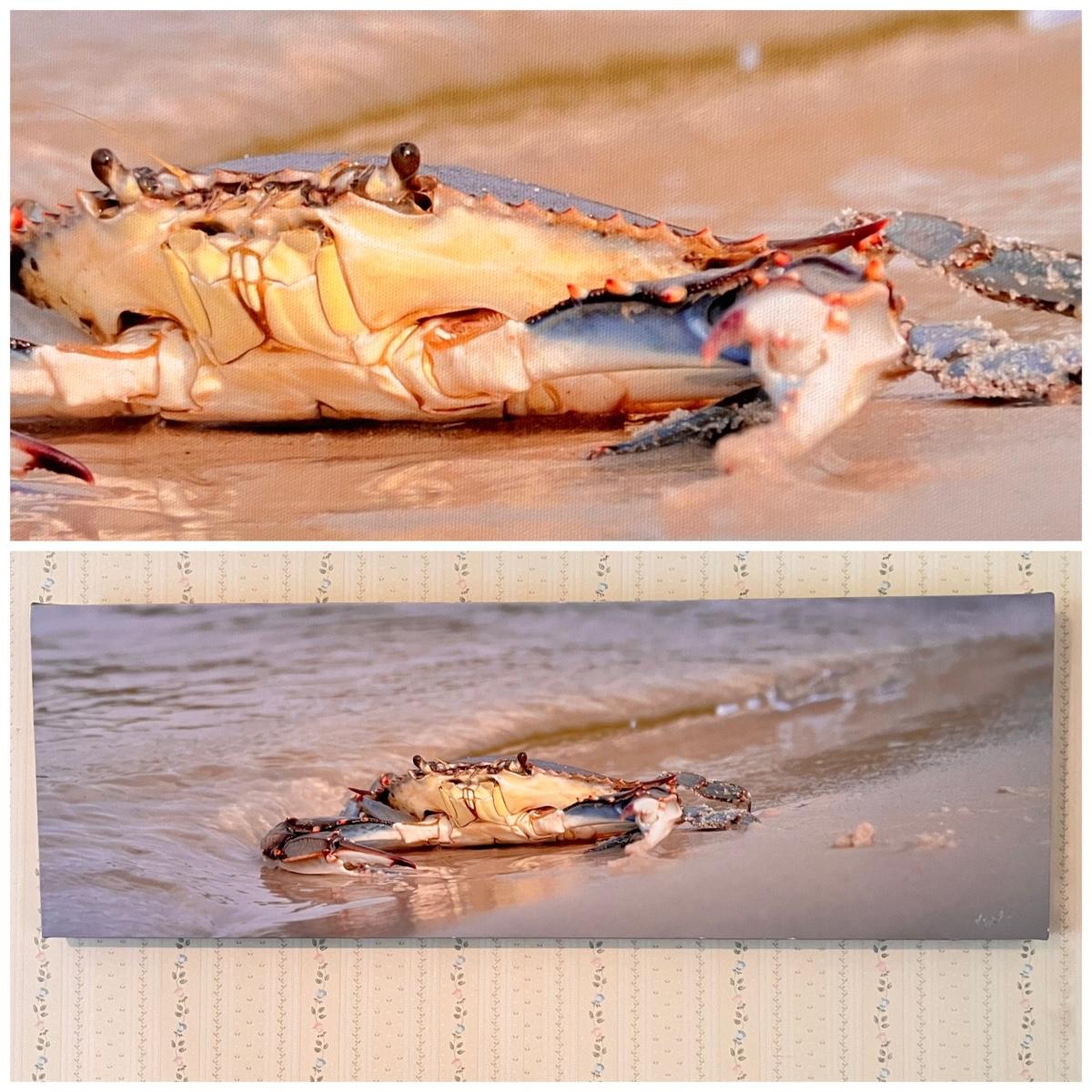 Signed local art on of crab on canvas. Approximately 12"x36"