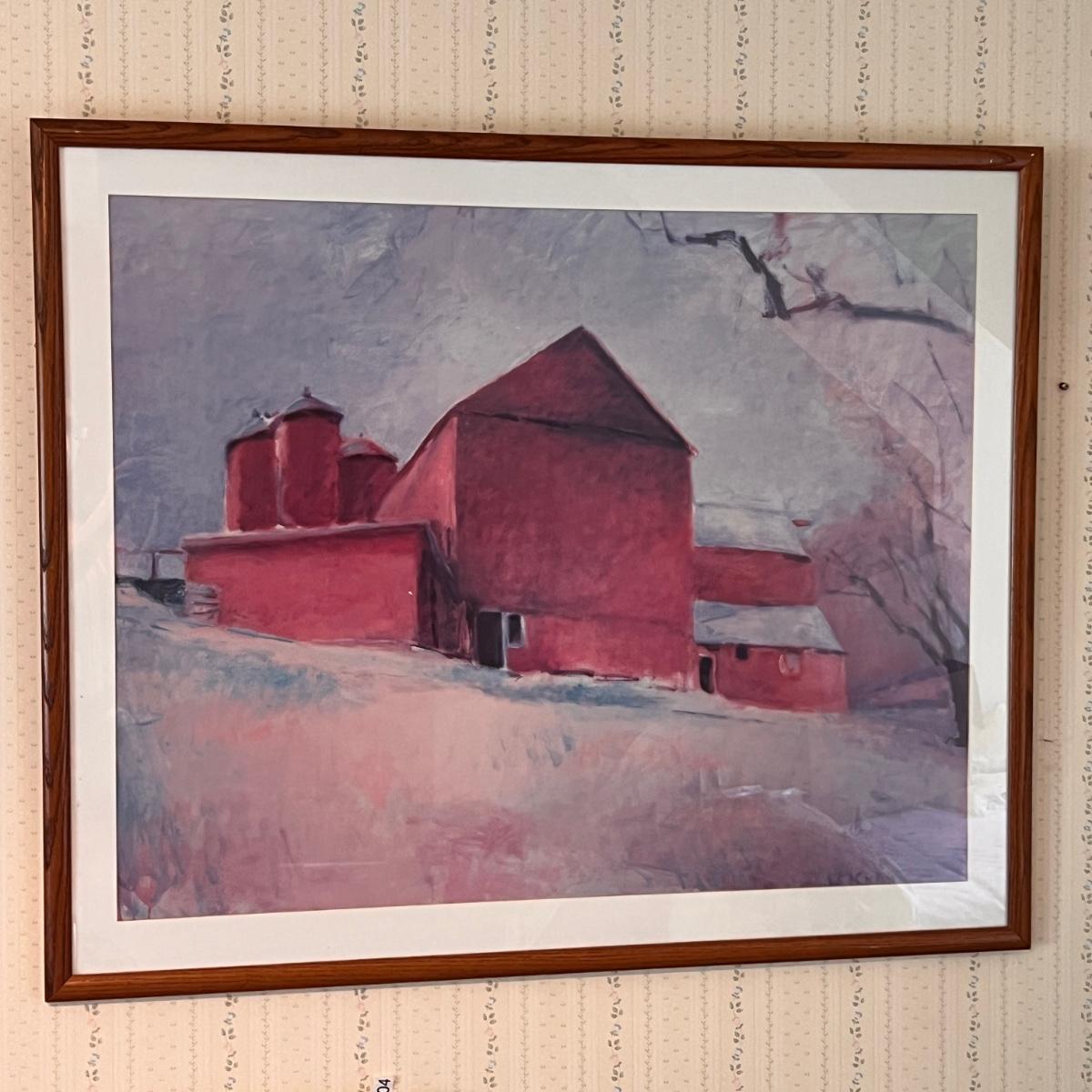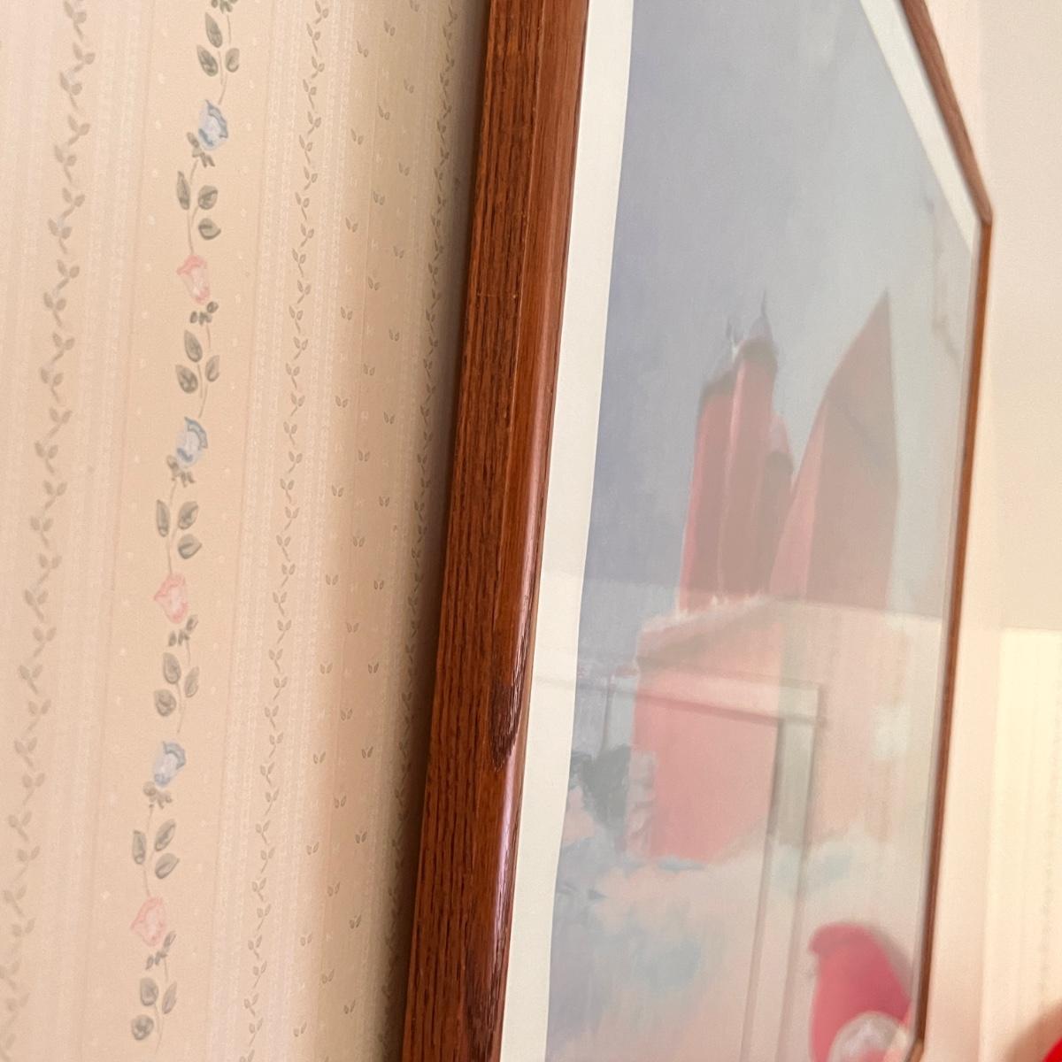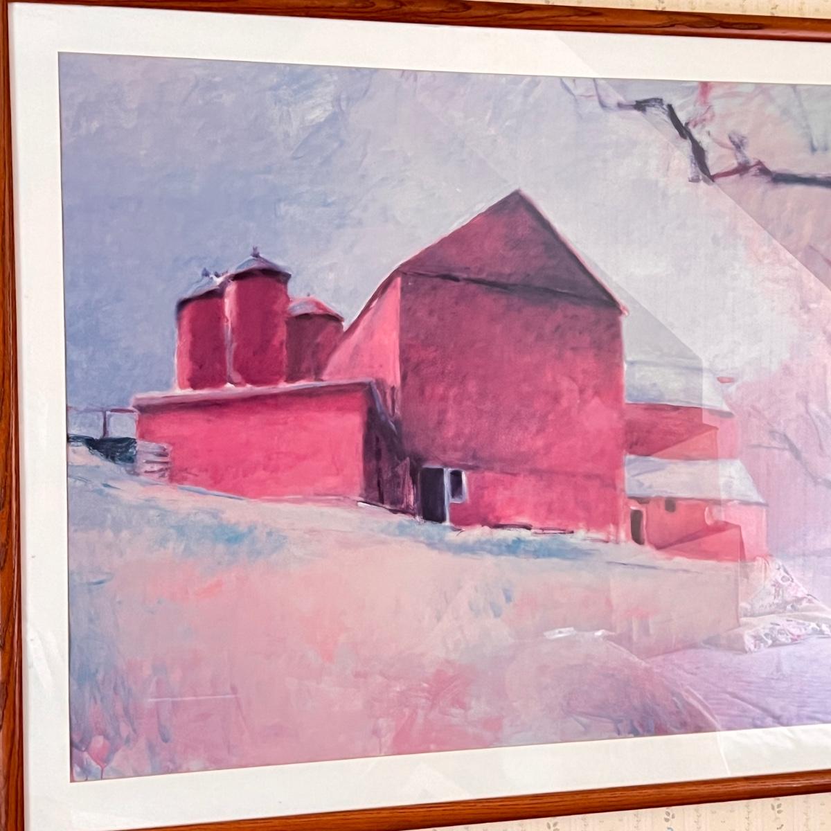 Beautiful farmhouse, pastoral setting. Matted with wood frame.