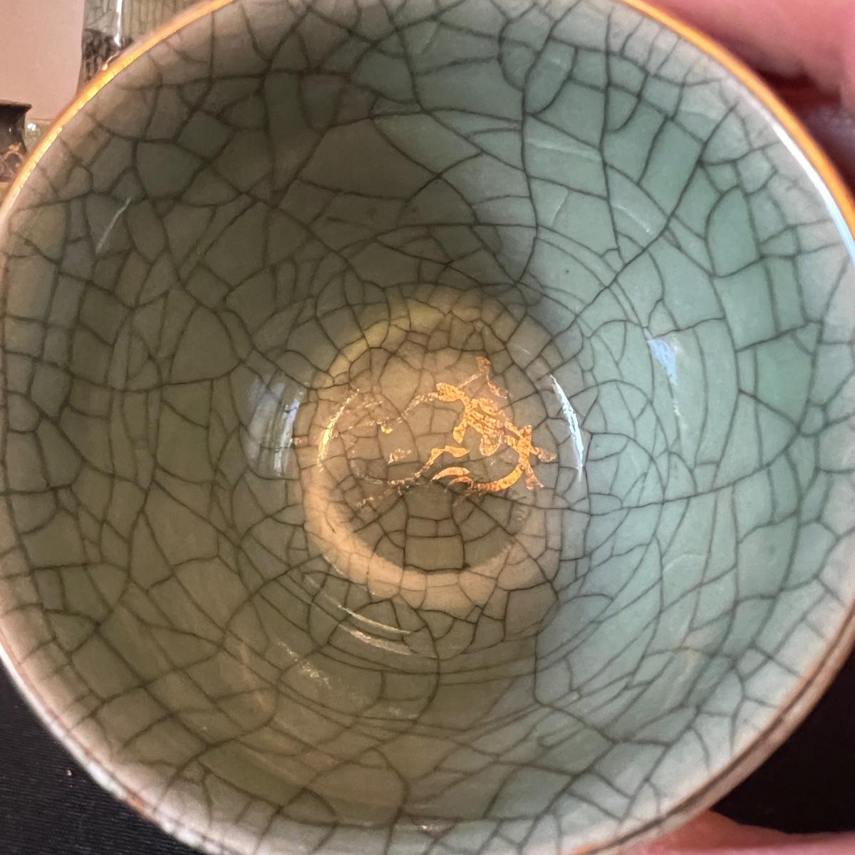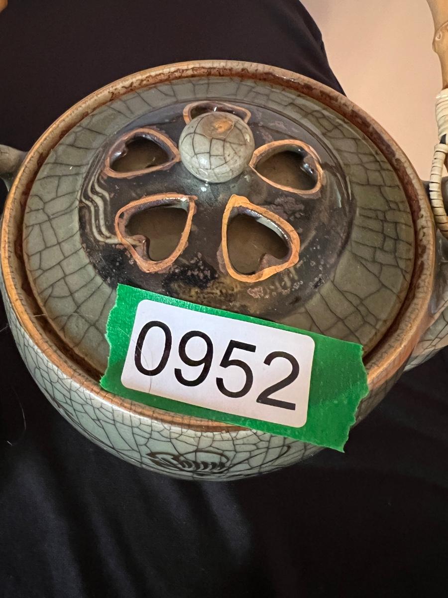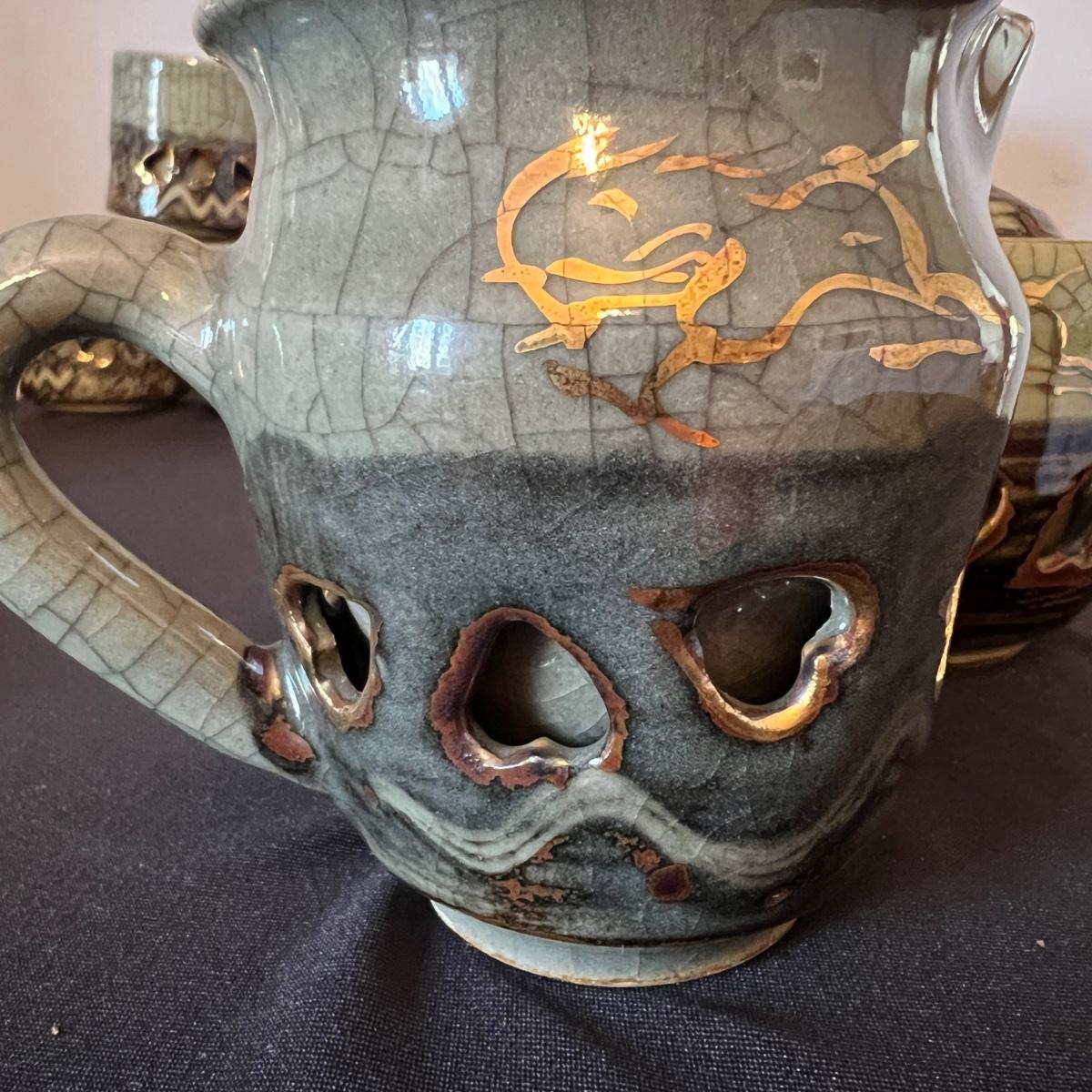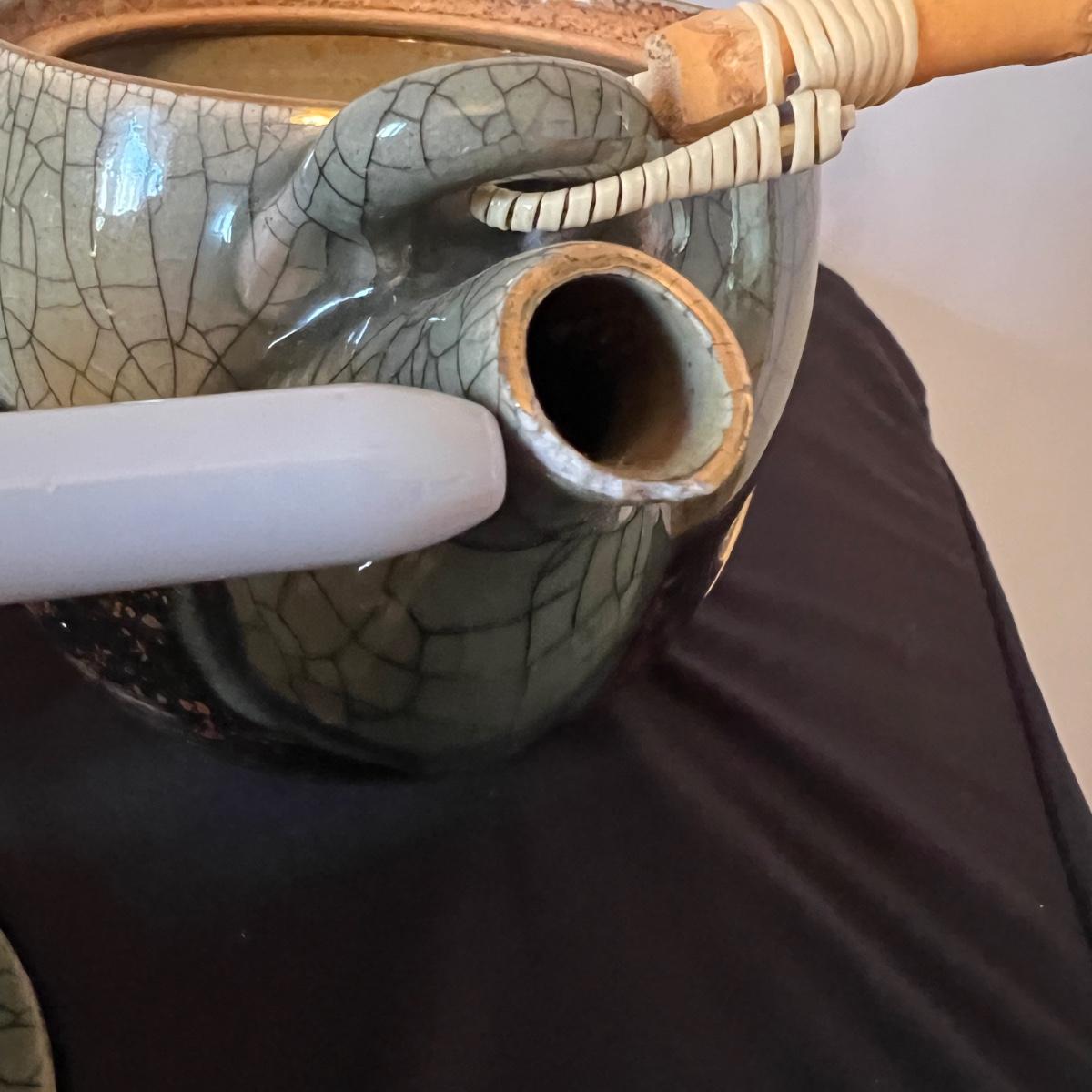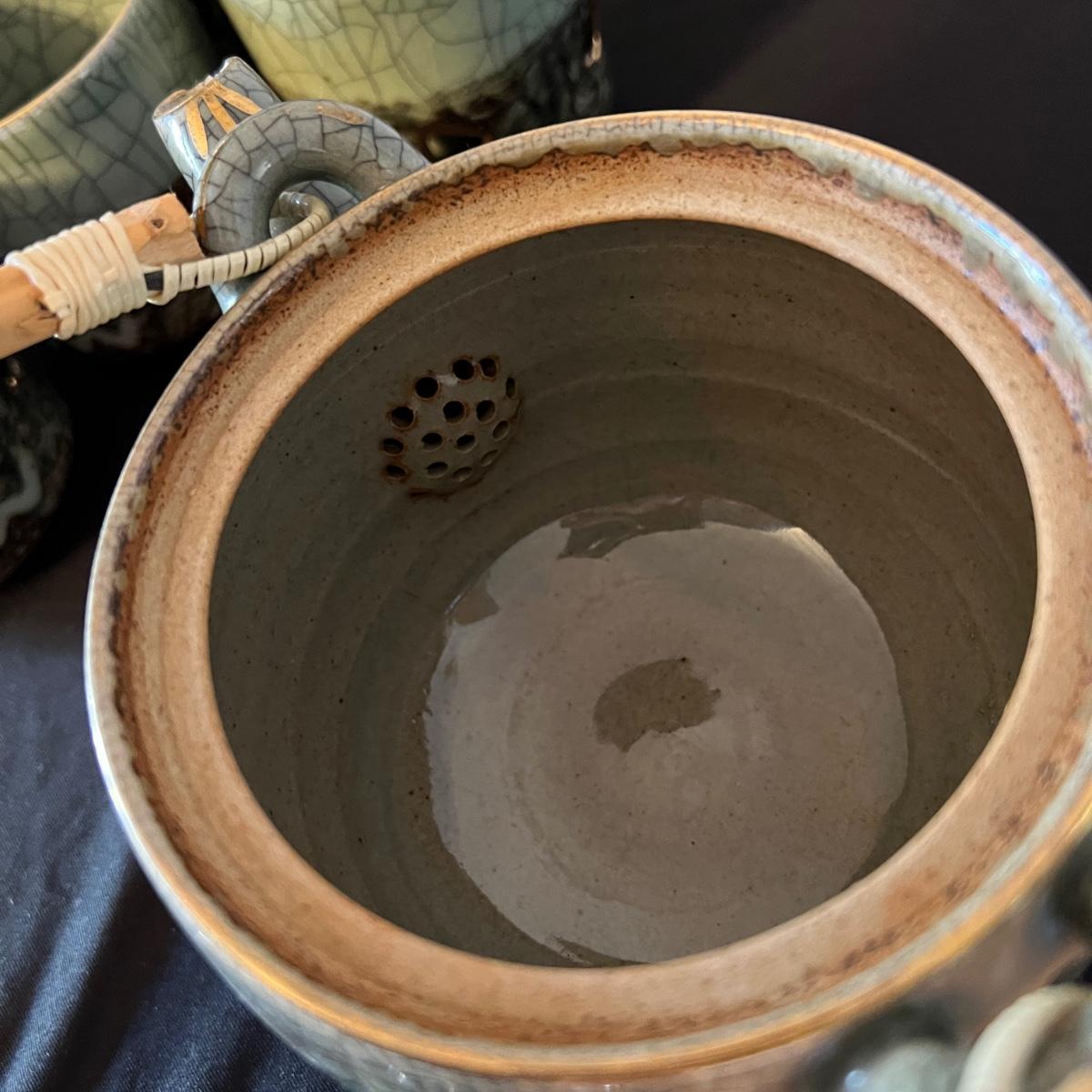 1960 Somayaki Soma Ware Green Crackle Ceramic Tea Set Vintage