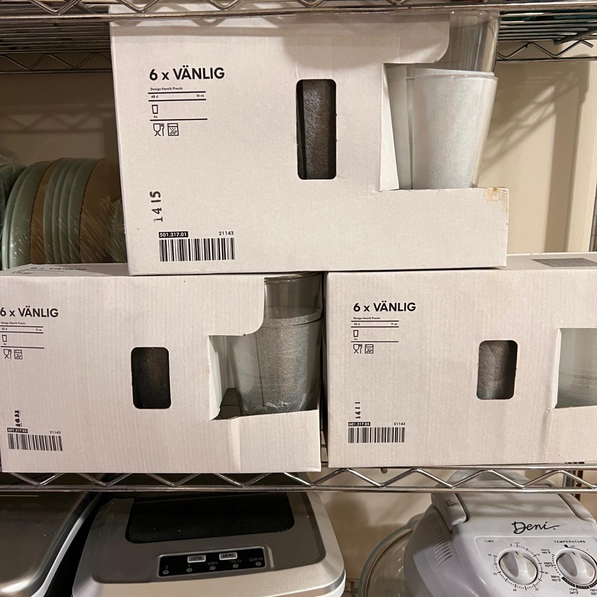 3 new boxes of ikea glasses - 2 boxes of 6 glasses 11oz, 1 box of 6 glasses 16oz.