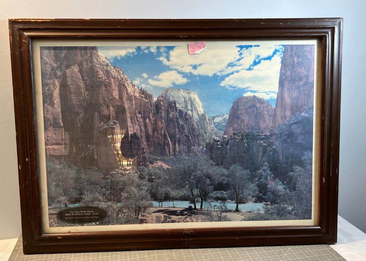 Zions Great White Thrown Framed Print by UNION PACIFIC Rail Road.
