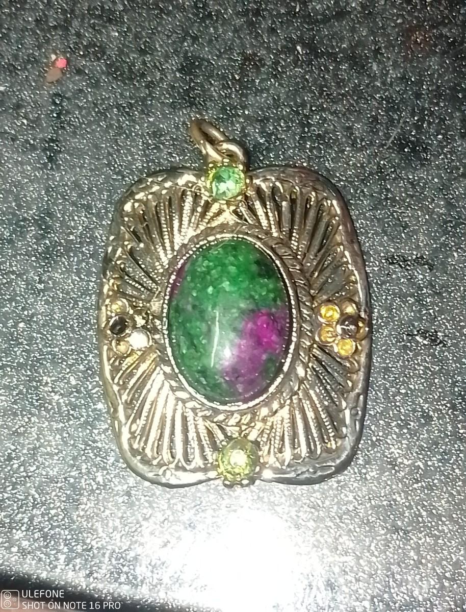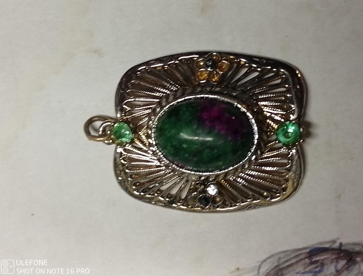 Ziosite Ruby & 14k Gold Pendant w/ 2 .50ct Round Emeralds