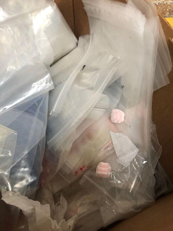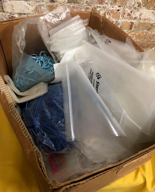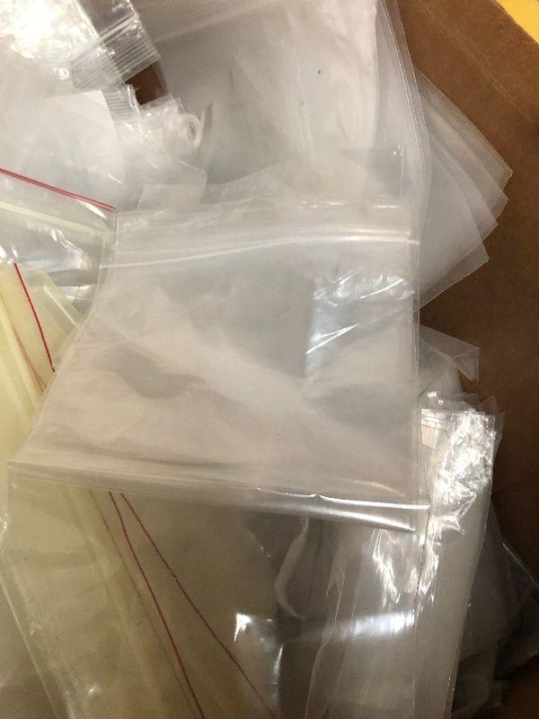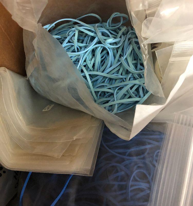 Here is a box full of plastic zip-lock bags(various sizes) and rubber bands...as shown...