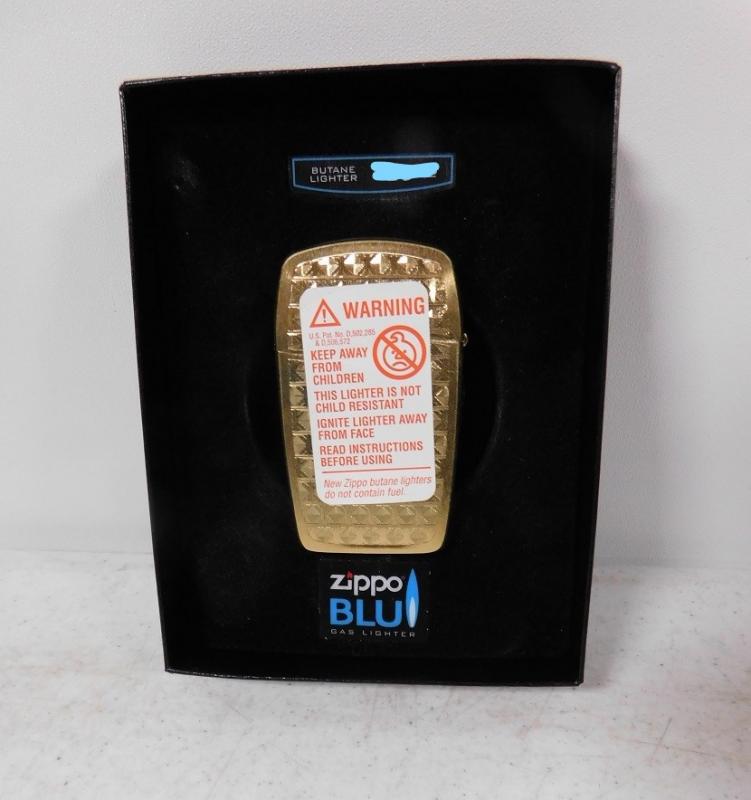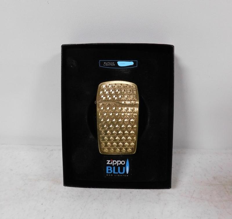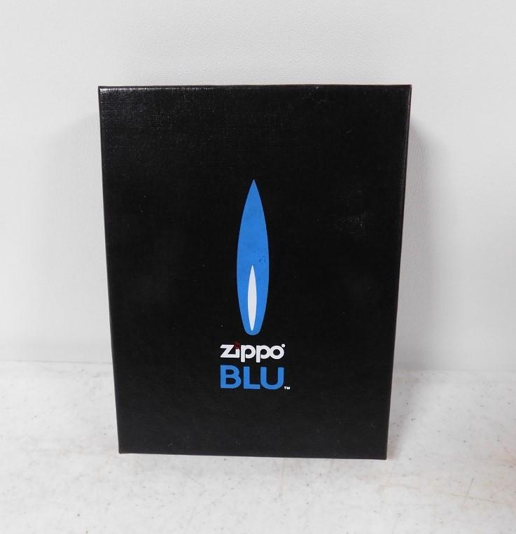 Zippo Blue Hologram Gas Butane Lighter new in box....never used as seen with intact stamp on back.
