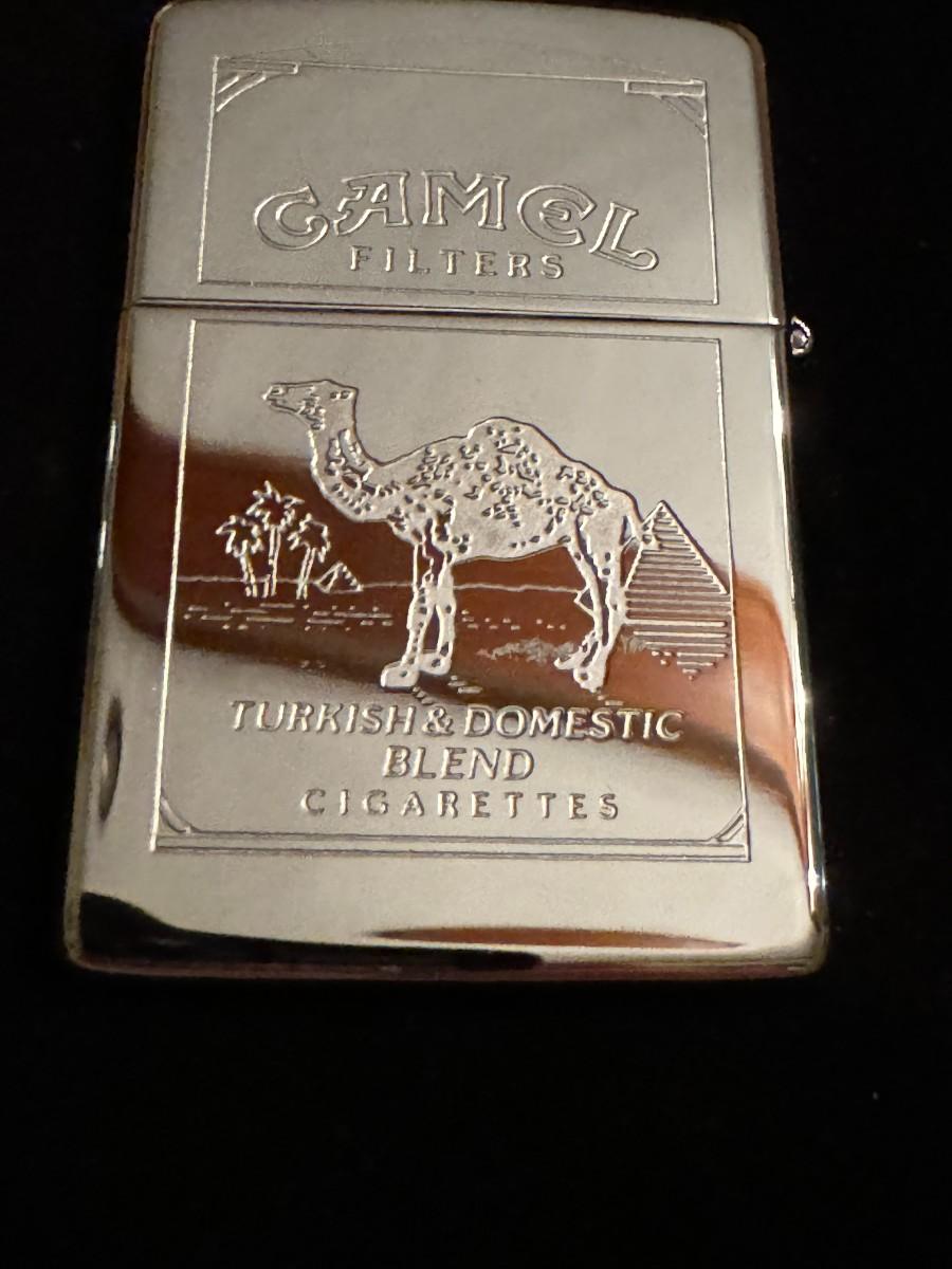 Camel cigarette lighter, featuring the iconic Camel logo, a camel, and the text "CAMEL FILTERS" and "TURKISH & DOMESTIC BLEND CIGARETTES".
