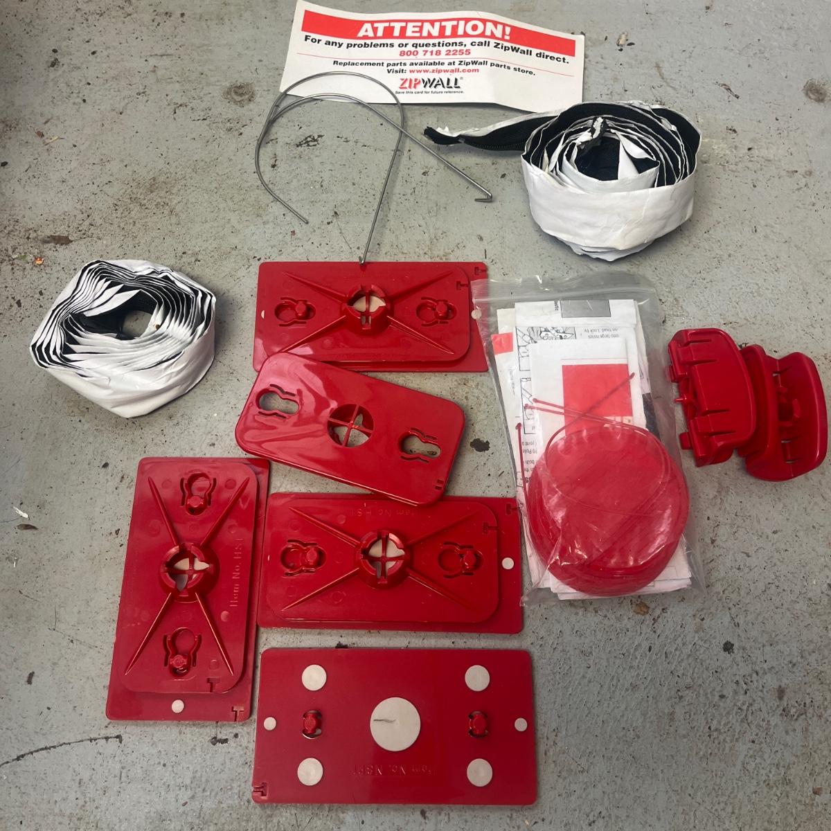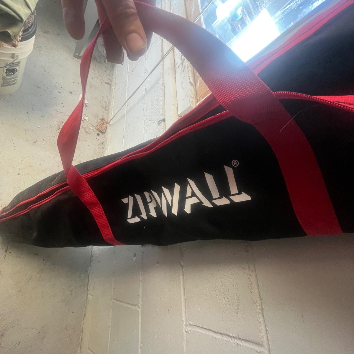 Lot contains a Zipwall dust barrier kit that includes two foam rails, four telescoping poles and accessories all in a nylon carrying bag. Telescoping poles go from 5’-12’.