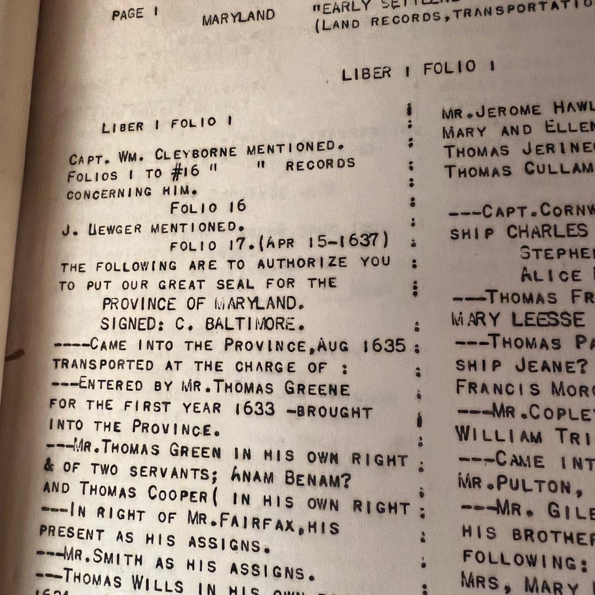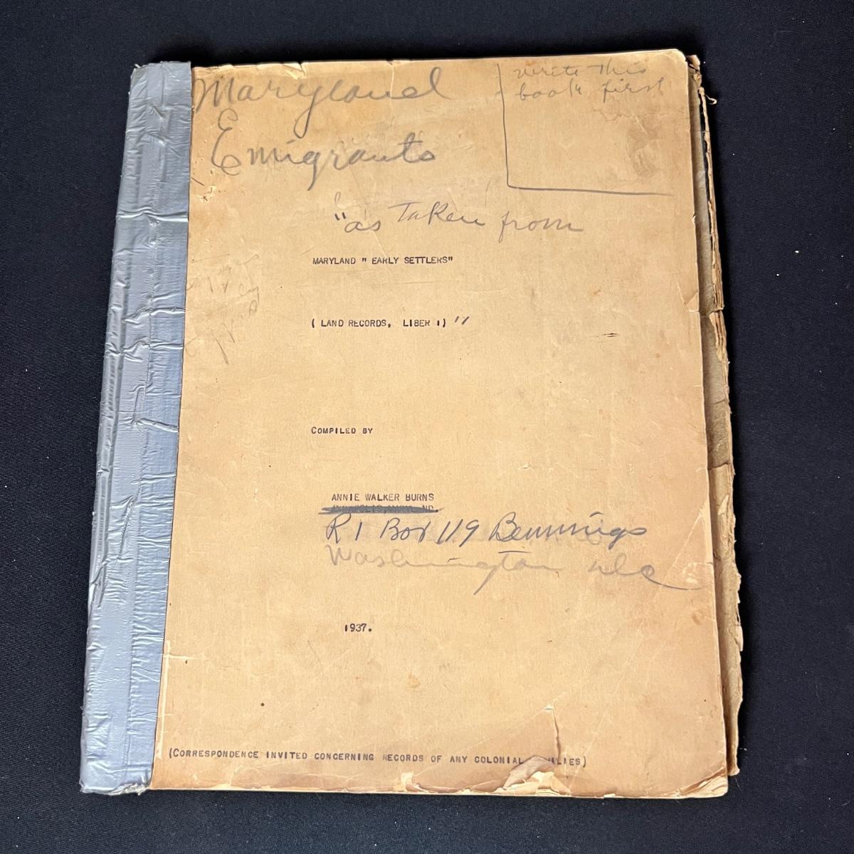 1937 EARLY MARYLAND SETTLERS Typed Book Manuscript by Author Mary Anne Walker Burns
