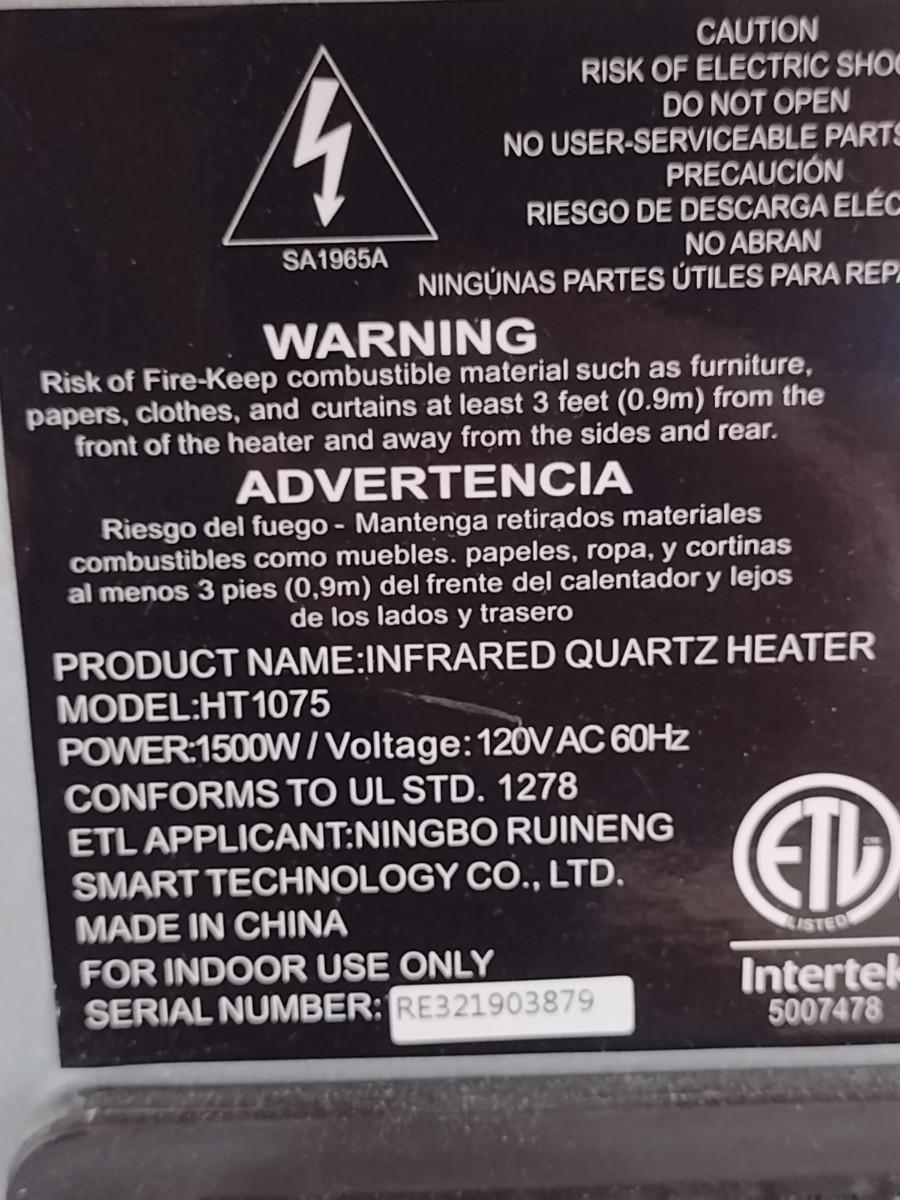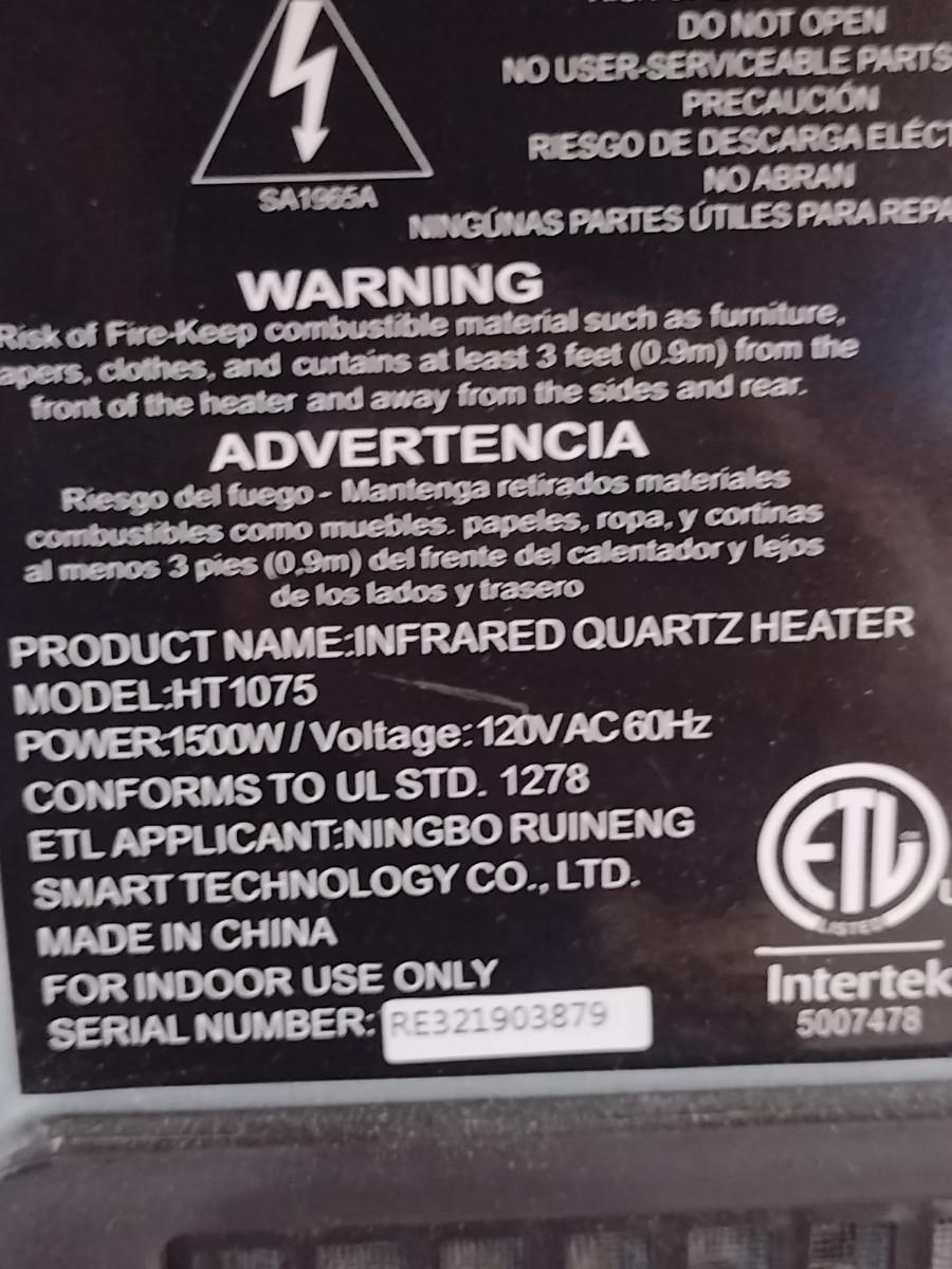 ZoKop Infrared Quartz Heater- 1500 Watt- In Working Condition