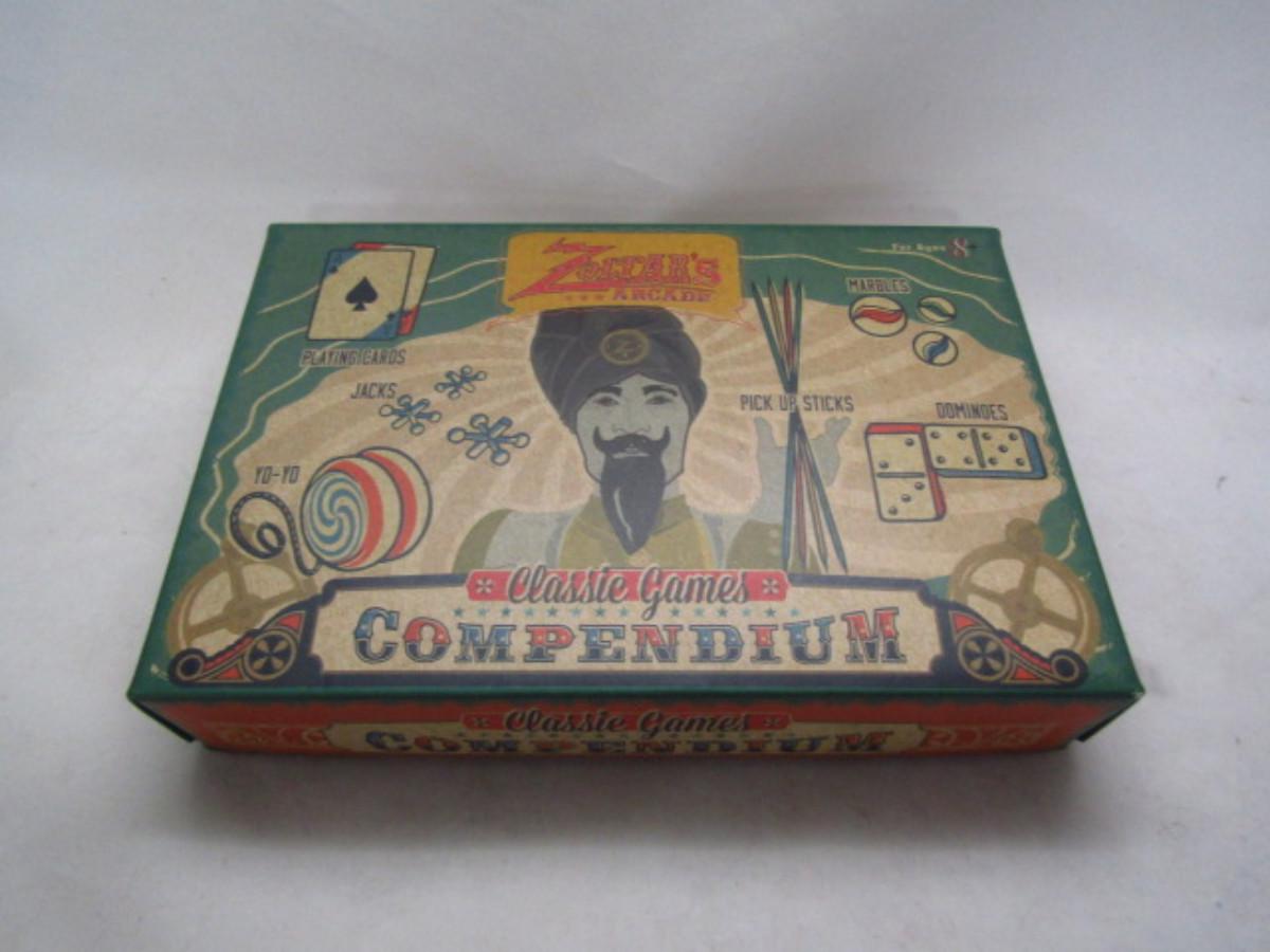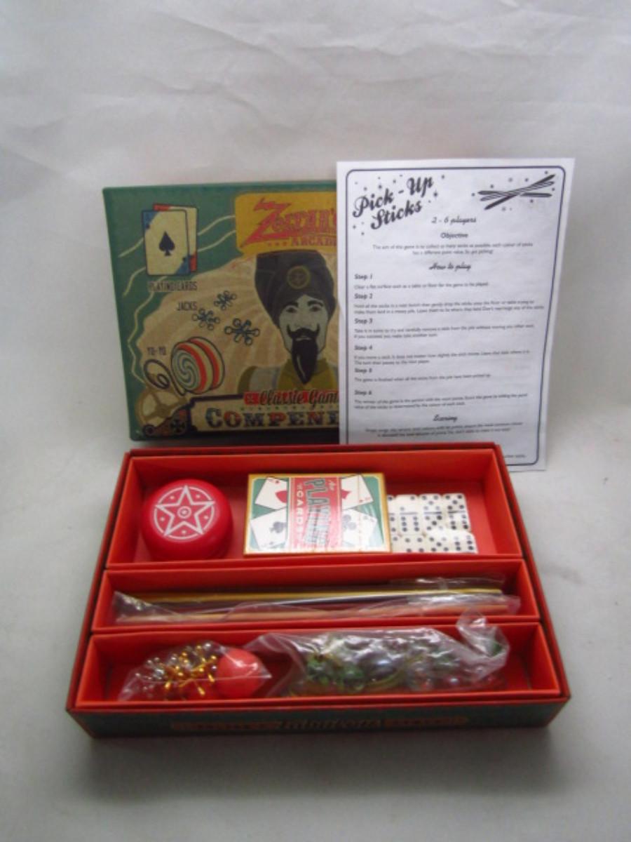 Zoltar's Classic Games Compendium- playing cards, yo-yo, jacks, pick up sticks, marbles, and dominoes.