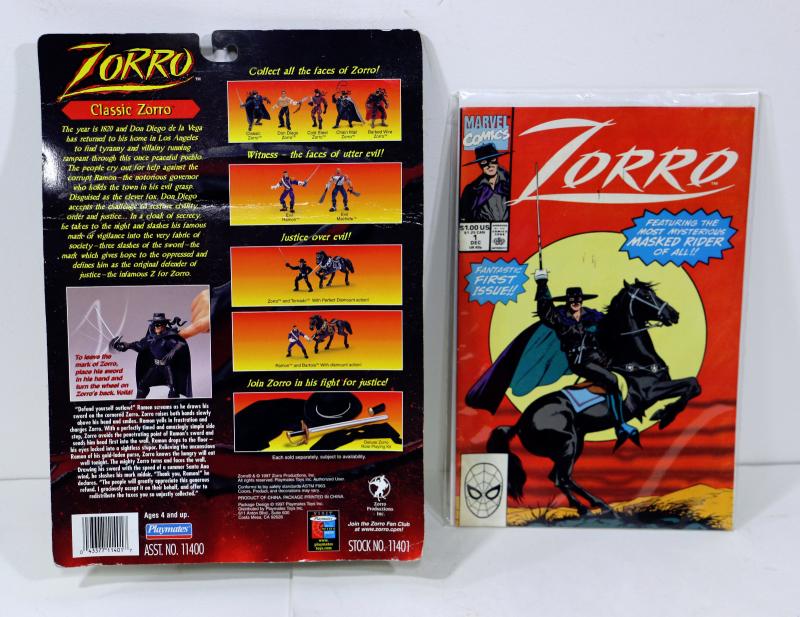 ZORRO - Vintage Movie Action Figure and #1 Zorro Marvel Comic Book