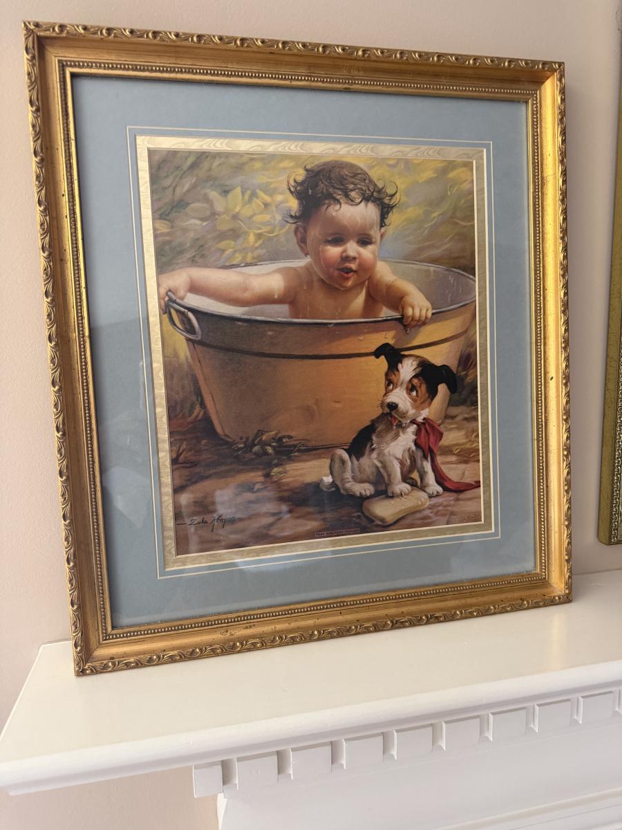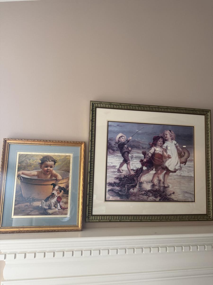 Lot includes a wooden framed print by Zulu Kenyon titled “That Guiltiest Feeling and a wooden framed print by Frederick Morgan titled “Sea Horses”. Both prints are under glass. Largest frame measures 33” x 30”H.
