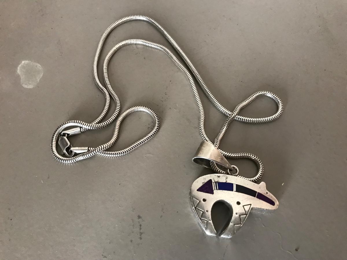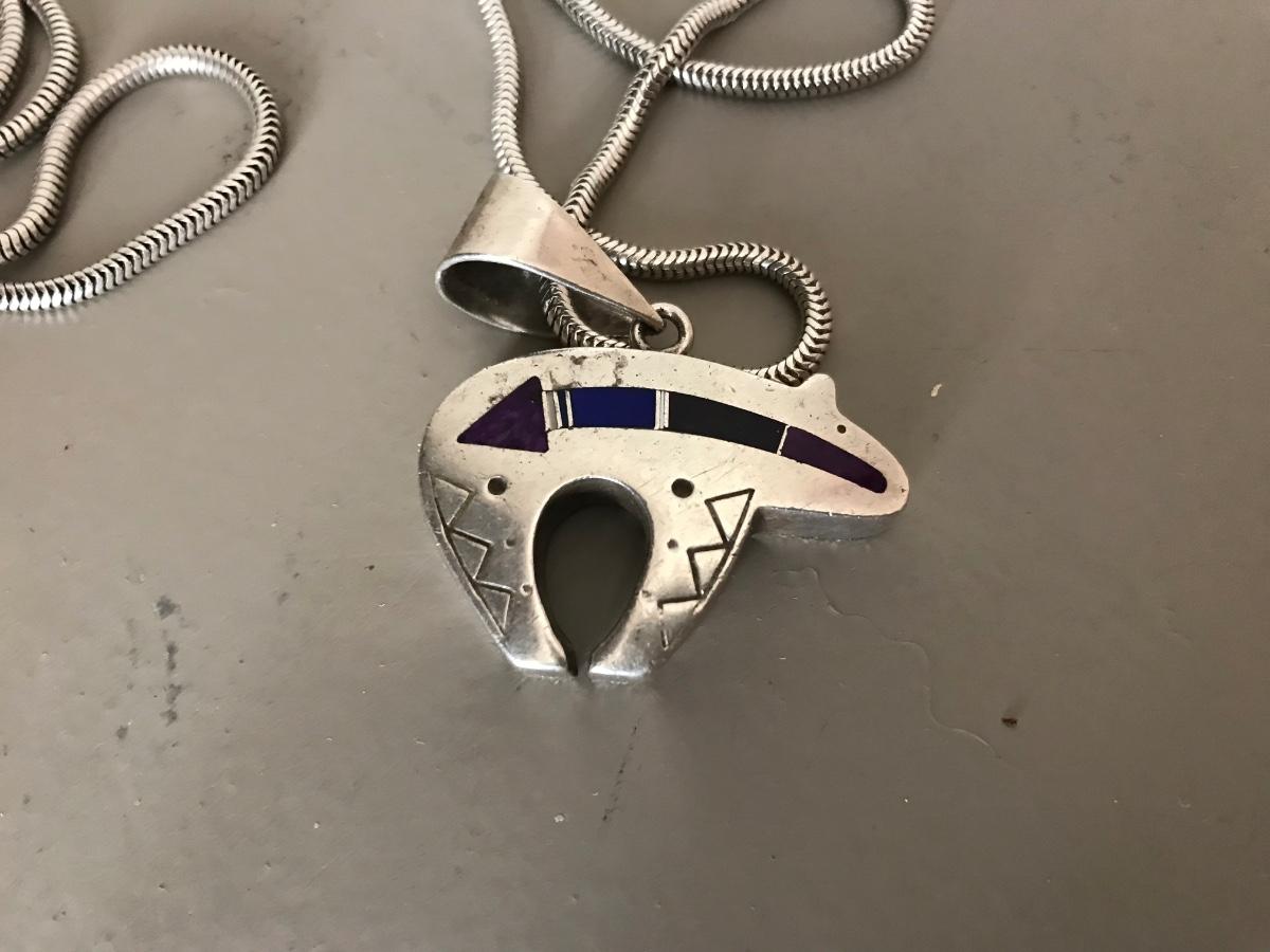 Sterling pendant and chain 24 inches chain length pendant 1/34 inches across a lot of silver