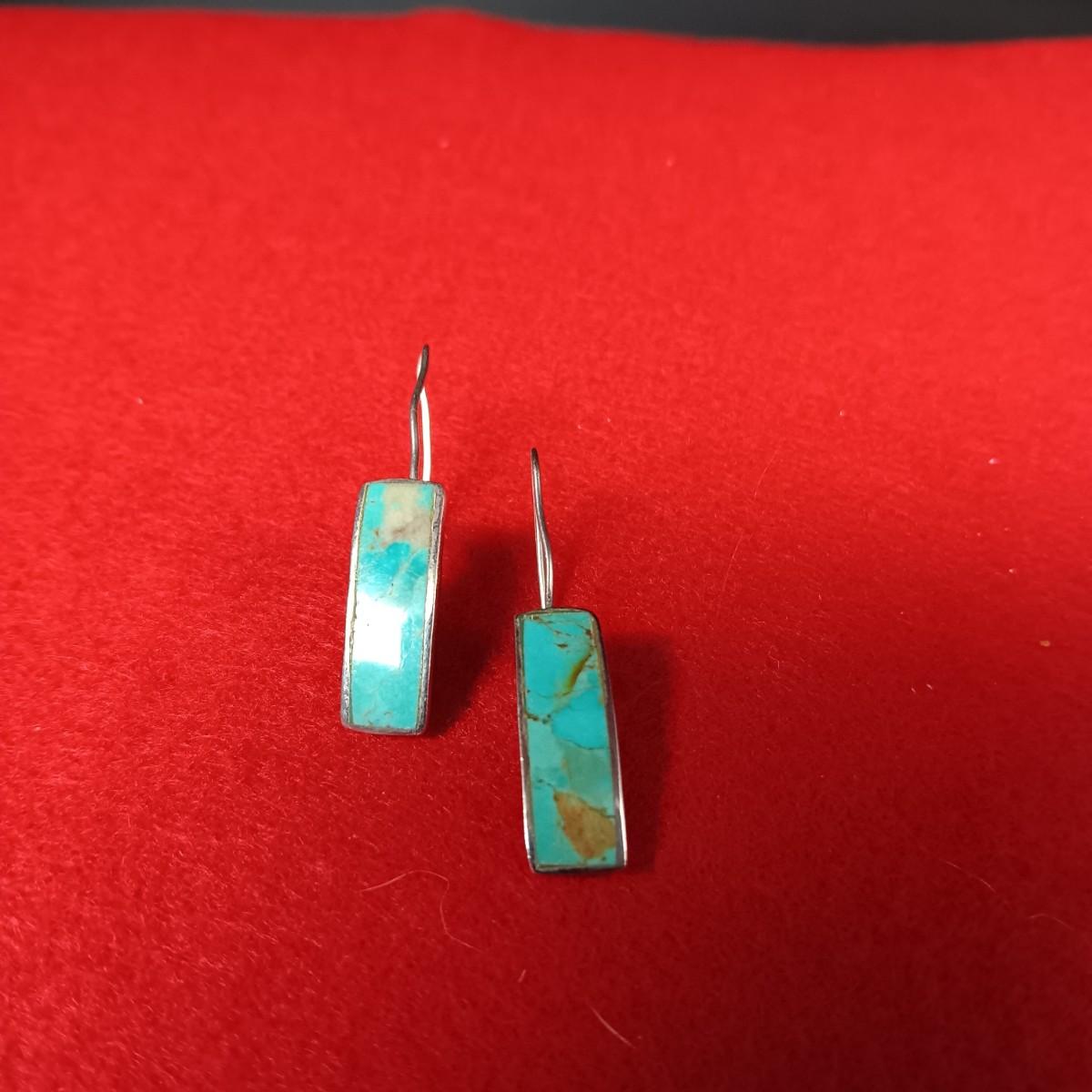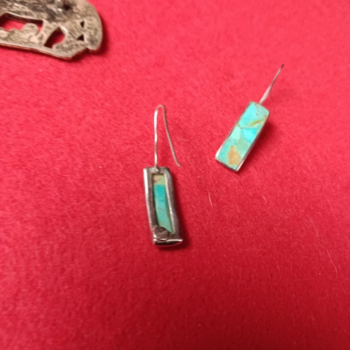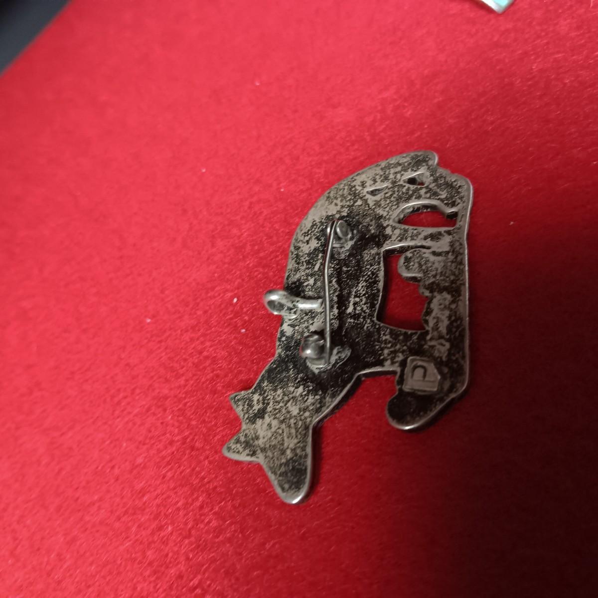 ZUNI WOLF BROOCH OR PENDANT BY PORFILIO SHEYKA AND TURQUOISE AND STERLING EARRINGS