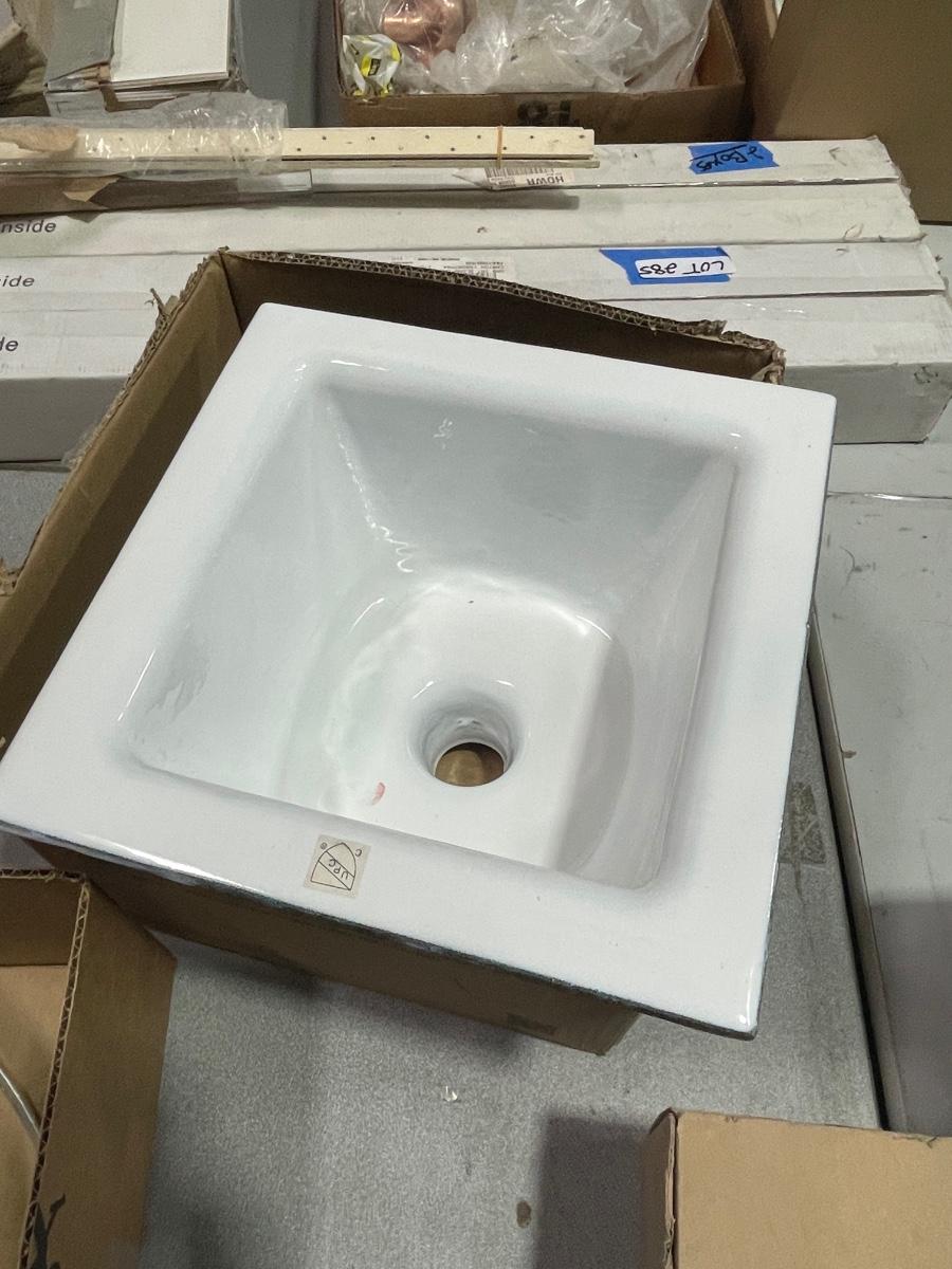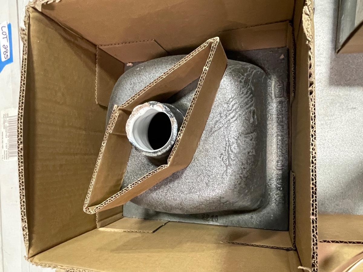 Picture of top and bottom of sink are from another lot of the same sink. We did not open this box.