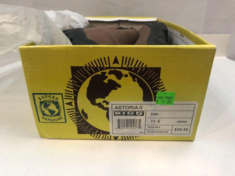 New in Box, men's Rugged Exposure Astoria II slip on hikers in size 11.5. Brown with black soles. #022-0427