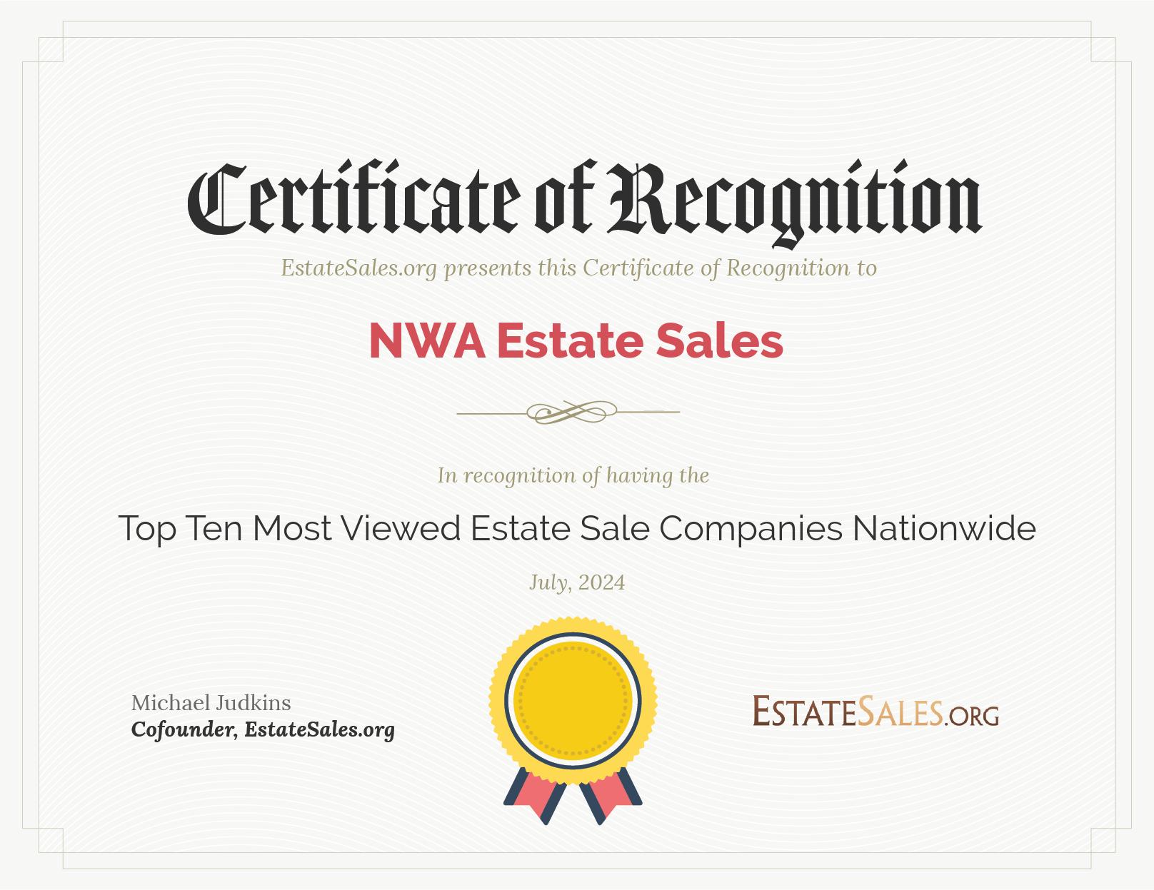 EstateSales.org is proud to present the award for