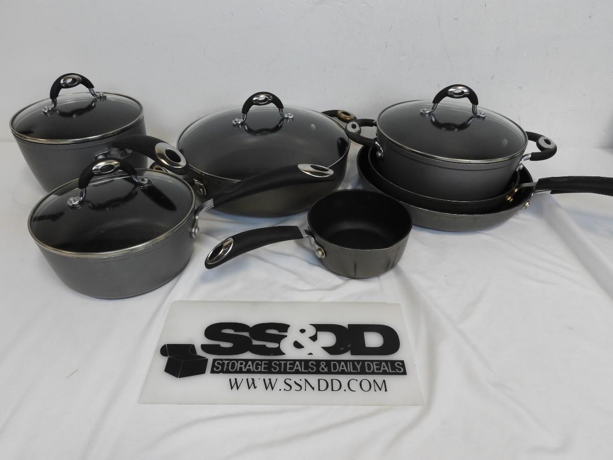 11 pc Metal & Glass Cookware Set by Bialetti: 3 pans, 4 pots, 4 lids